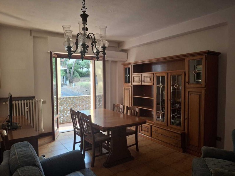 Completamento arredato, posto al piano 1° di un edificio di 6 piani, con ascensore, composto di: ingresso, cucina abitabile con finestra affacciante su terrazzo posto a nord, soggiorno/pranzo con finestra affacciante su medesimo terrazzo, una camera doppia con portafinestra affacciante su un secondo terrazzo lato est, arredata con due letti singoli, bagno principale con finestra, completo di doccia, sanitari, wc, una camera singola, piccolo vano di servizio dotato di lavatrice, lavandino/pilozzo, wc. L’appartamento è inoltre dotato di un fondo al piano seminterrato -1, oltre ad un posto auto riservato nel parcheggio condominiale.