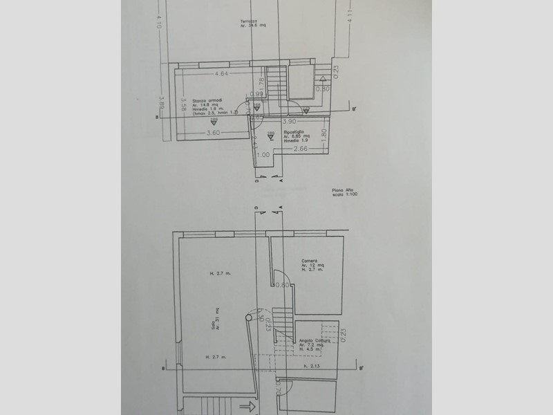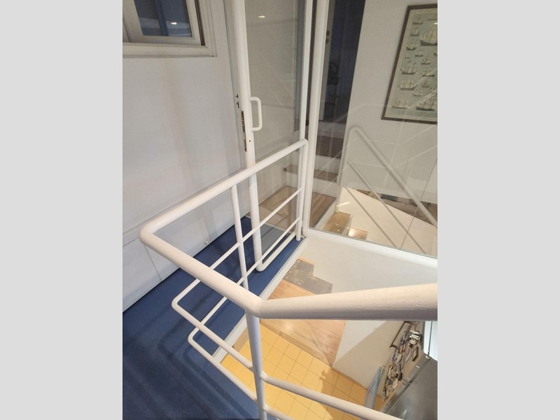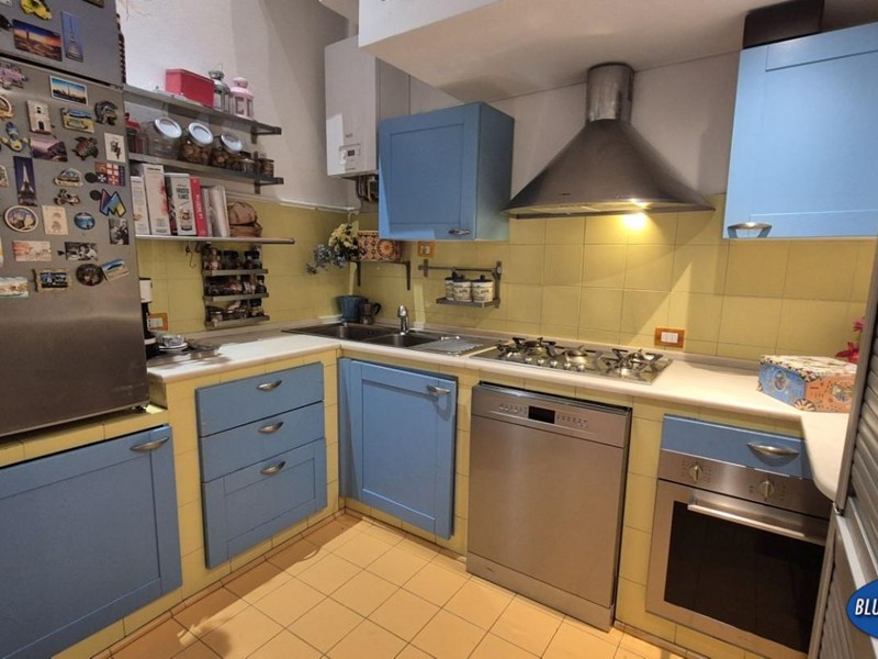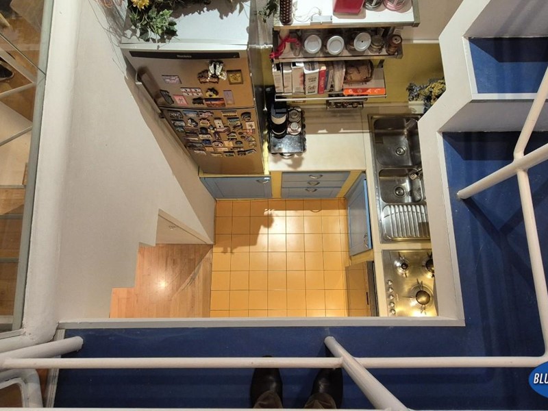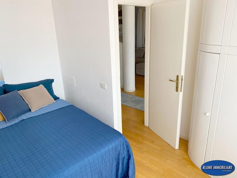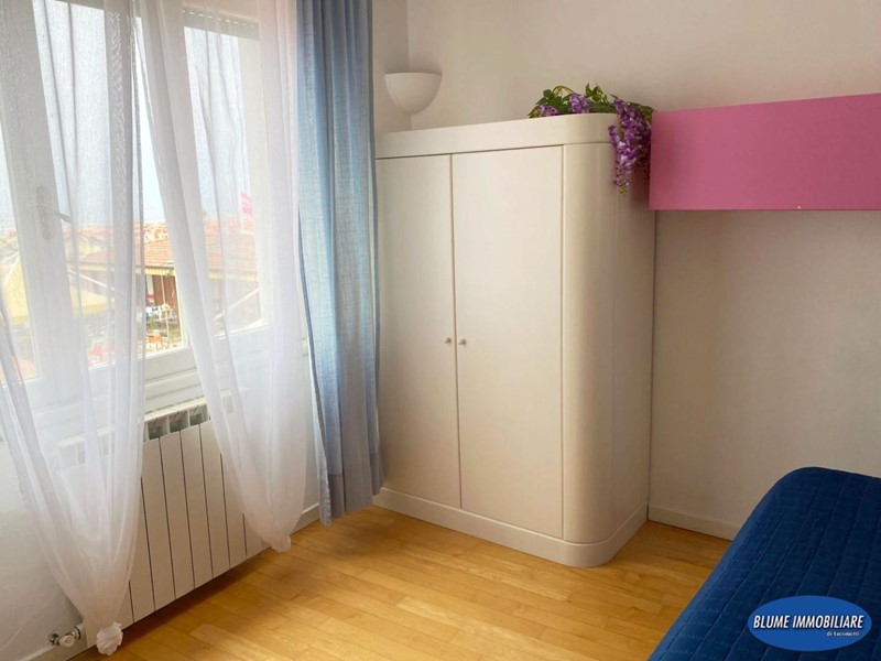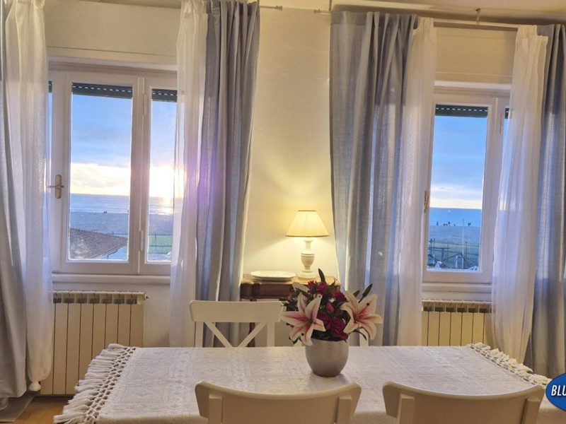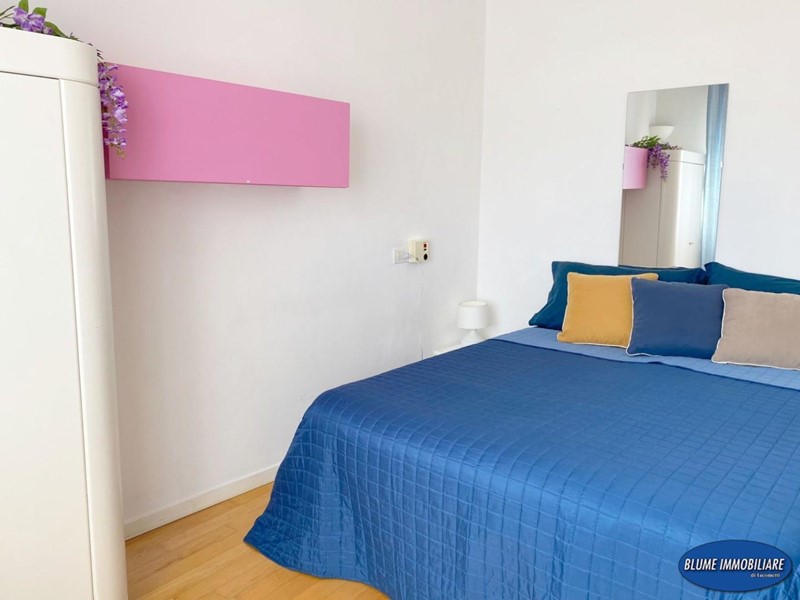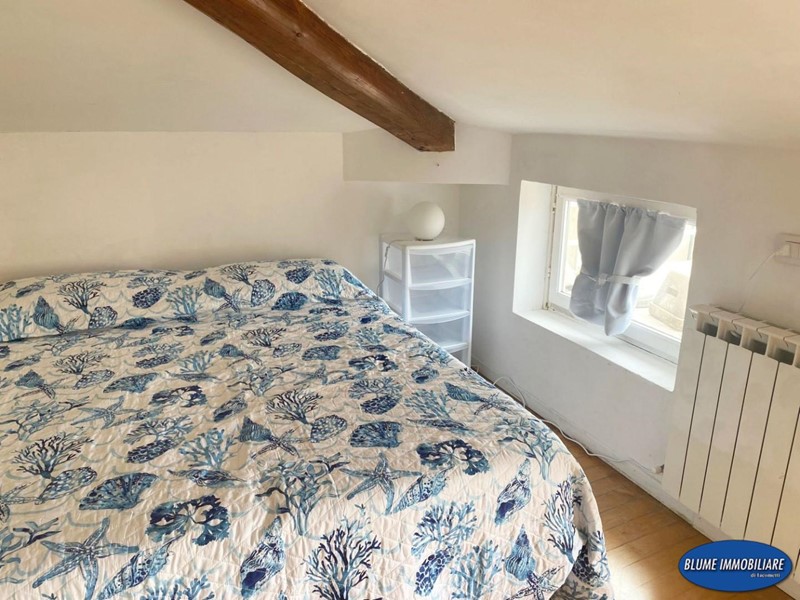 Le rifiniture sono molto particolari, sembra di essere sopra una nave, con ringhiere in metallo, pavimenti in legno, finestre che guardano il mare e lo spettacolo del tramonto, sia dalla zona giorno che dalle camere e naturalmente dalla terrazza, è veramente unico. Si compone di ingresso con attiguo cucinotto, un bagno con vasca ed una grande sala doppia fronte mare, dotata di finestre sui due lati, prima della ristrutturazione la sala era divisa e una parte era adibita a camera, che naturalmente si può ripristinare se occorre. Dalla sala si accede ad una camera, sempre fronte mare. Una bella scala in metallo e legno, permette l'accesso al piano mansardato dove troviamo una camera, al momento utilizzata anche come studio, con armadi a muro e finestre a parete, attigua cameretta e poi l'accesso alla terrazza di oltre 30 mq. con vista mare.