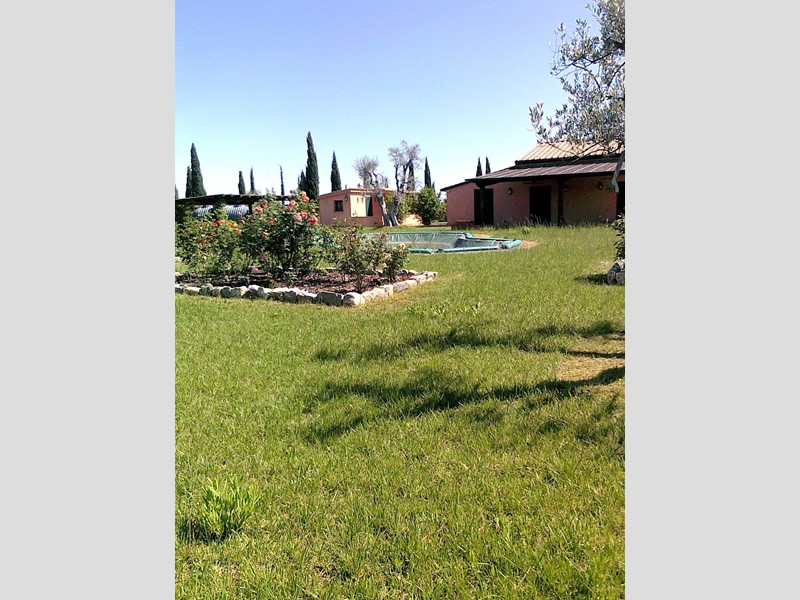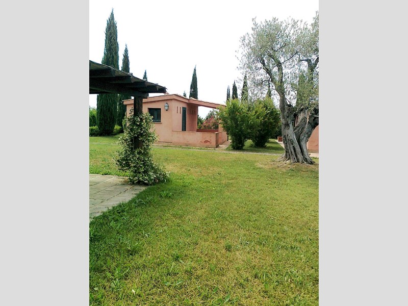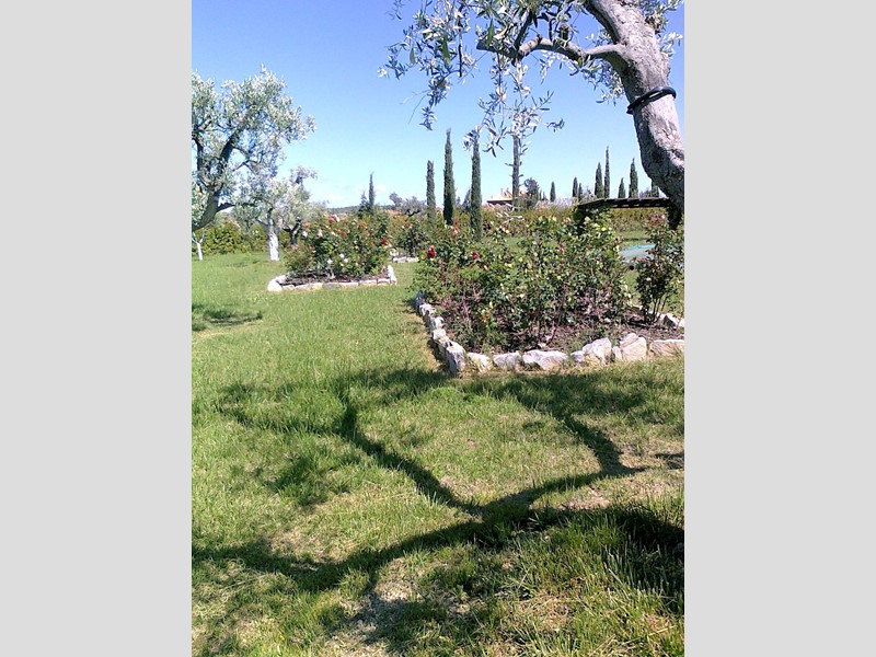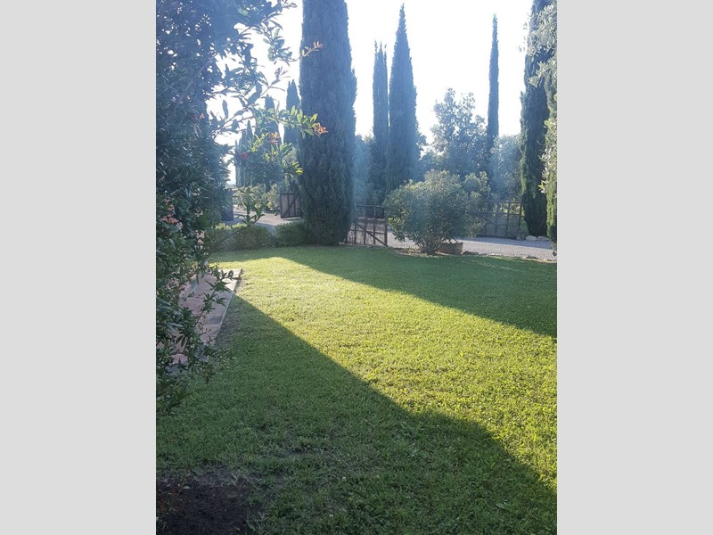 Giardino recintato di circa 6.000 mq con ulivi e piante di alto fusto in alcuni punti della recinzione con impianto di Irrigazione a servizio del prato e delle piante. Nel giardino troviamo una piscina 14 x 6 e una cisterna di acqua per irrigare.