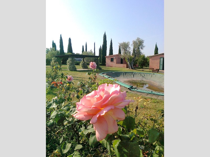 Il casale è inserito, insieme ad altri, in un complesso privato con accesso limitato e videosorvegliato. Nel comprensorio c'è unaltra piscina condominiale più grande a sfioro con acqua salata in condizioni perfette. Completa la proprietà un locale tecnico di 30 mq con veranda a pochi metri dal casale con serbatoio per lacqua potabile, grande generatore e rimessa attrezzi. La proprietà è in zona collinare panoramica a pochi minuti dal mare del Monte Argentario - Talamone, spiaggia Giannella e tombolo della Feniglia e a 5 minuti di auto dal paese di Magliano in Toscana .