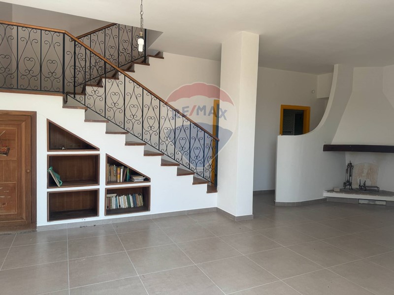Gli interni sono spaziosi e ben distribuiti, un patio d'ingresso conduce ad un ampio salone con camino, di lì si accede alla cucina, ad una camera ed un bagno, una scala a vista conduce al piano primo che ospita 3 ampie camere letto ed un bagno.