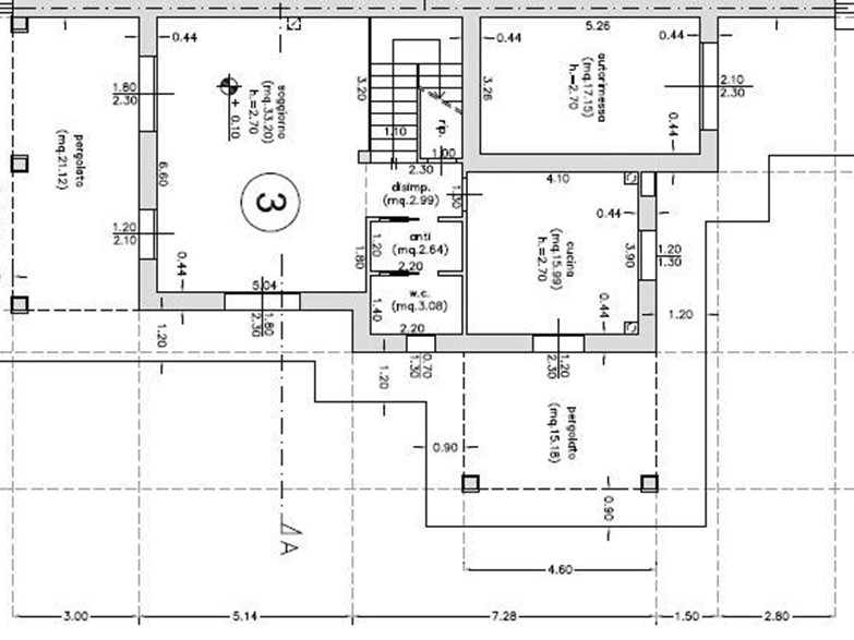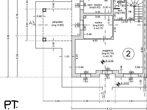 - Piano terra: un ampio soggiorno, una cucina abitabile, un disimpegno, un anti-servizio con bagno e un ripostiglio.