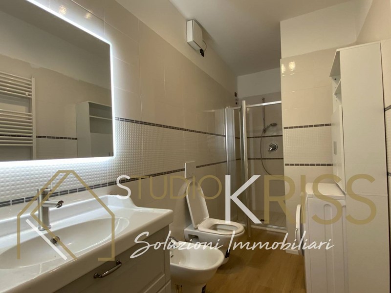 L'appartamento è composto da due locali, una spaziosa camera da letto, un bagno moderno con doccia e una cucina a vista completamente attrezzata.