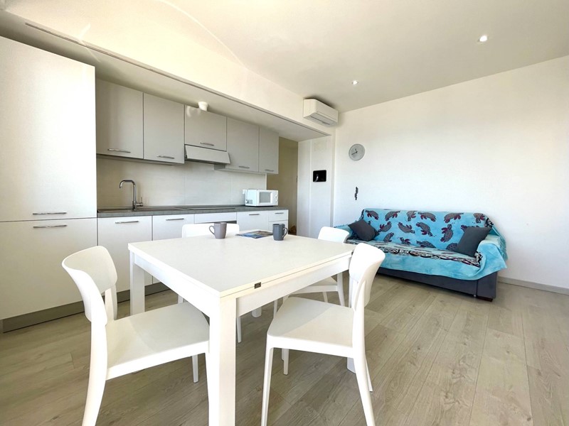 L'appartamento è composto da un'ampia zona giorno con cucina a vista, che si affaccia su un terrazzo vivibile dalla meravigliosa e apertissima vista mare, due spaziose camere da letto e un bagno finestrato con doccia.
