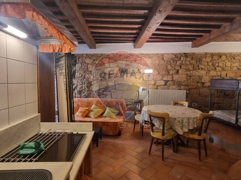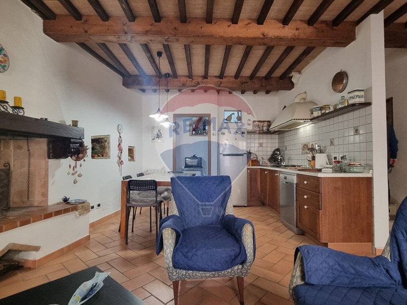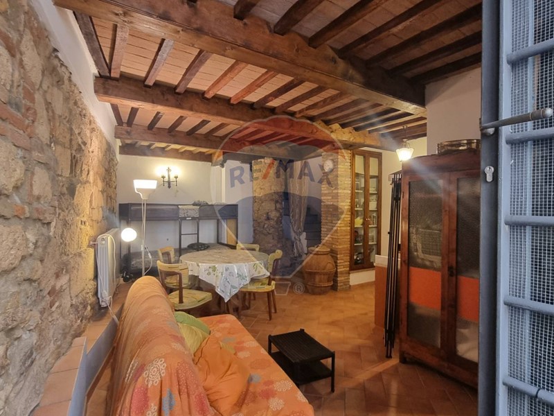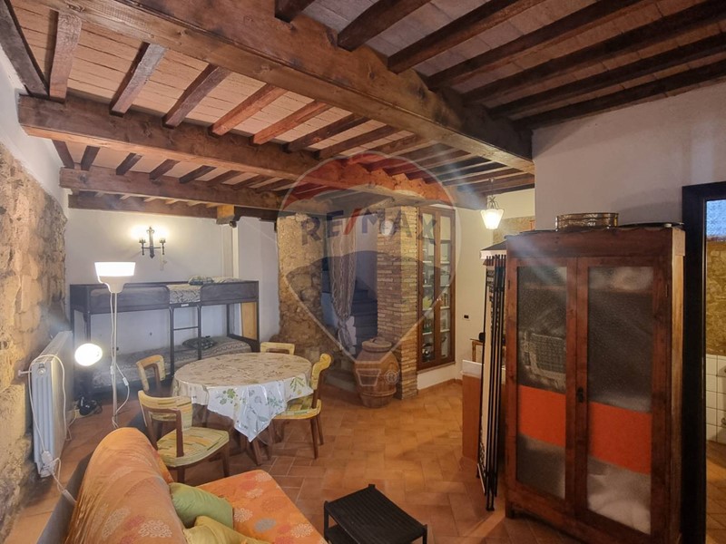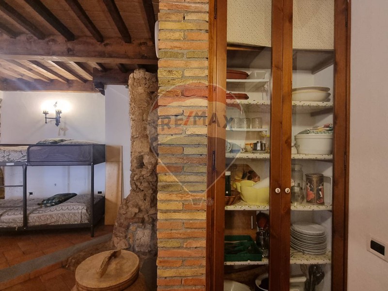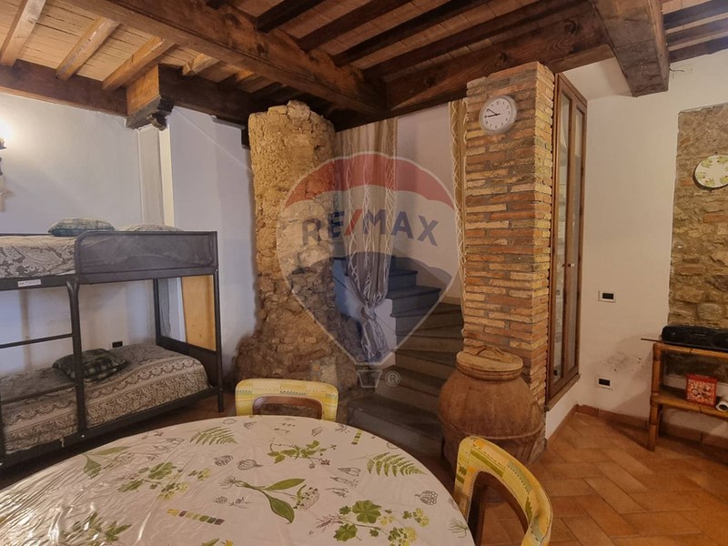 La taverna è completamente in pietra ed ha un comodo bagno finestrato mentre, da scale interne, si sale nella zona giorno caratterizzata da spaziosa zona cucina con grande caminetto antico, l'unico pezzo della casa che non è stato ristrutturato. La casa è caratterizzata da alcune feritoie e tutta la proprietà, probabilmente nel medioevo, era una torre di avvistamento.