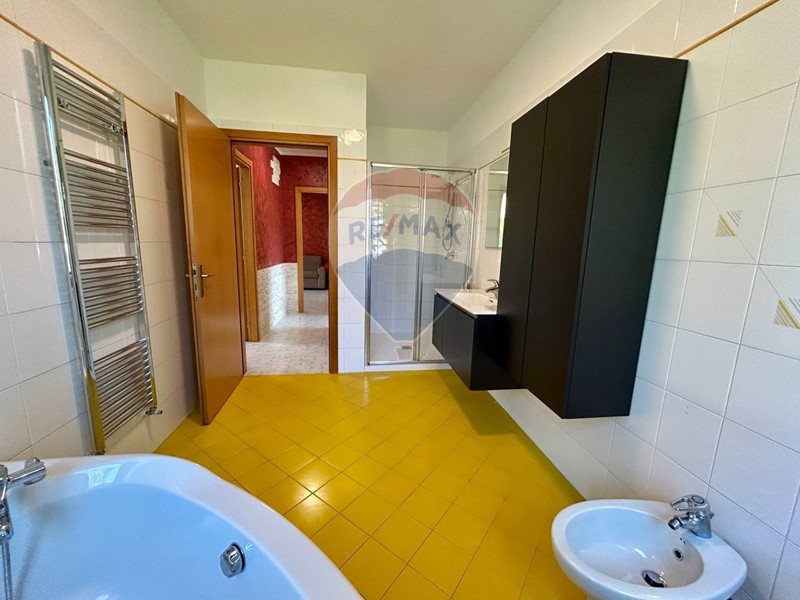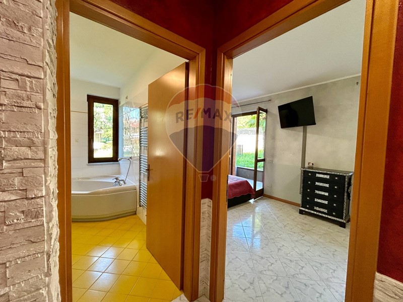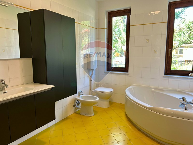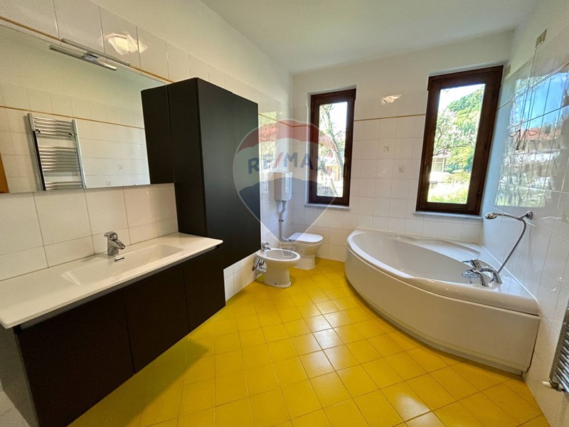 La zona notte è composta da due spaziose camere matrimoniali, entrambe con affaccio diretto sul giardino, una delle quali, per le sue generose dimensioni e la presenza di due finestre distinte, può essere facilmente suddivisa per ricavare una terza camera o uno studio. Il bagno, finestrato, è dotato sia di vasca che di doccia, offrendo il massimo del comfort.