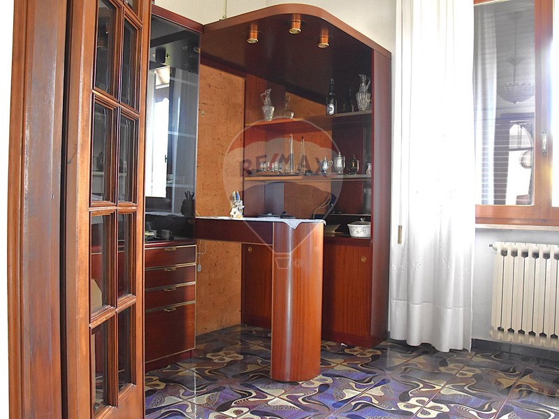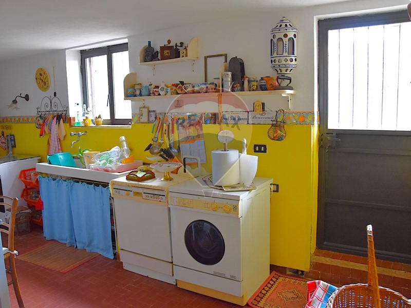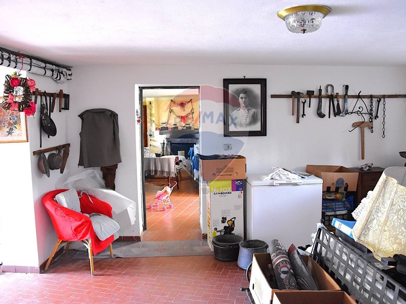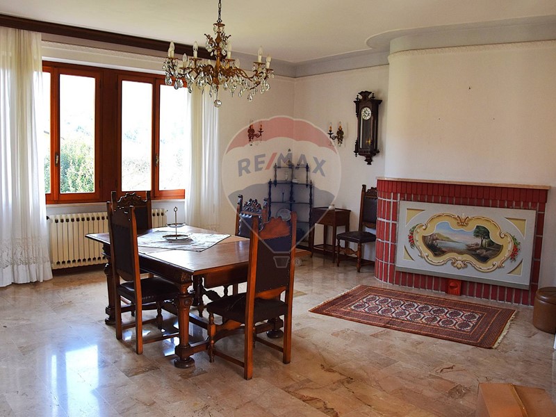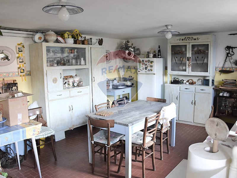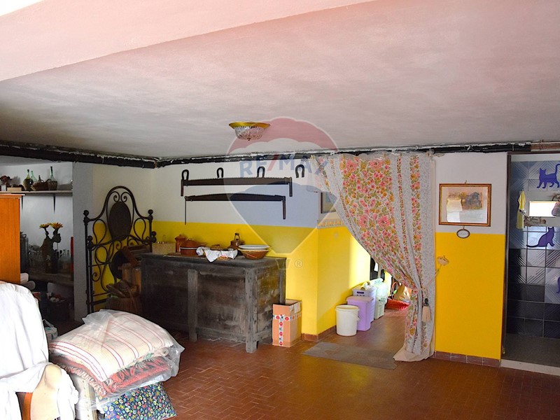 Al piano sottostante, raggiungibile sia da davanti che sul retro : caratteristica taverna con il secondo camino della casa, una cucina antica spaziosa, il terzo bagno. Garage doppio e cantina. Locale caldaia e sottoscala.