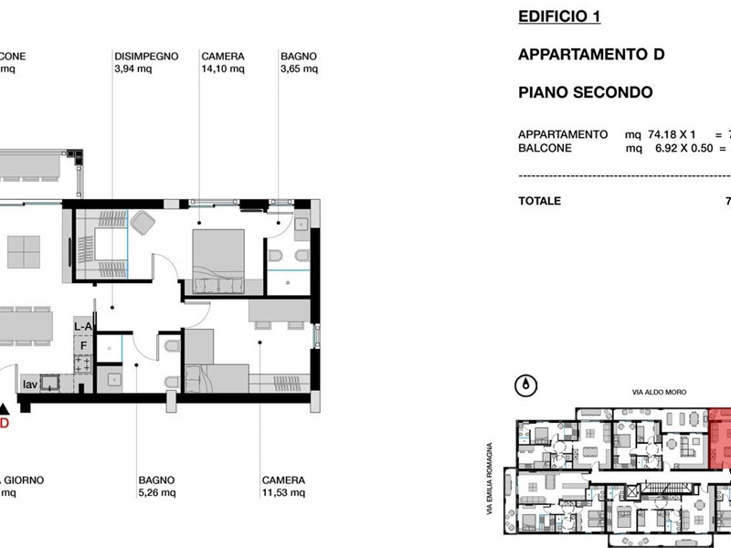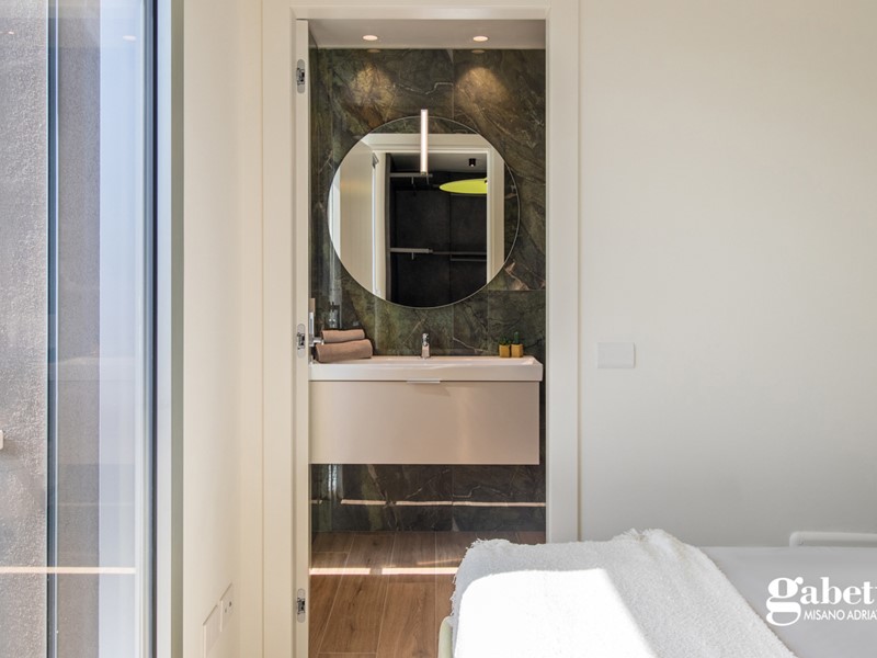 L'abitazione, completa di arredi di design, si sviluppa su una superfice di 77mq ed è composta da un'accogliente zona giorno con cucina a vista e balcone, una camera padronale con cabina armadio e bagno privato, una camera e un secondo bagno.