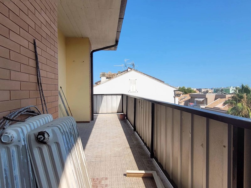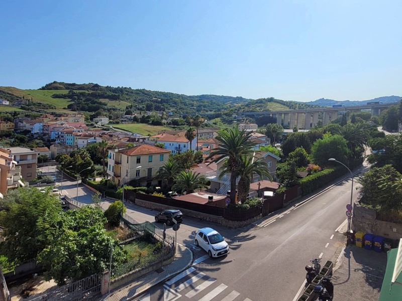 L'appartamento di circa 104 mq è in fase di ristrutturazione, attualmente è organizzata in ingresso su disimpegno, salone con cucina a vista, una camera matrimoniale molto ampia e una camera doppia, locale ripostiglio/stireria con scarichi e prese d'acqua, un bagno. L'esposizione è Sud - Est. La zona giorno è servita da un ampio balcone ad angolo su cui affaccia anche una camera da letto e da cui si gode di un meraviglioso panorama sulle colline e sulla città, dalla finestra della camera matrimoniale si vede anche il Torrione di San Benedetto del Tronto.