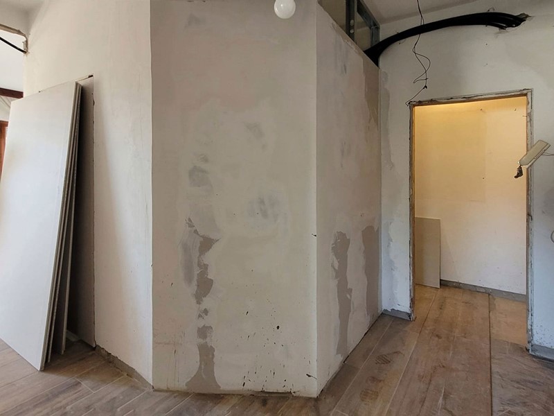 In fase di completamento la ristrutturazione degli impianti di luce, acqua e gas, sono stati realizzati dei tramezzi in carton gesso, il pavimento nuovo è stato posato sull'esistente ed è in gress porcellanato finitura parquet, gli infissi in legno doppio vetro non sono stati cambiati cosi come il bagno che è di recente realizzazione. La caldaia non è stata cambiata.