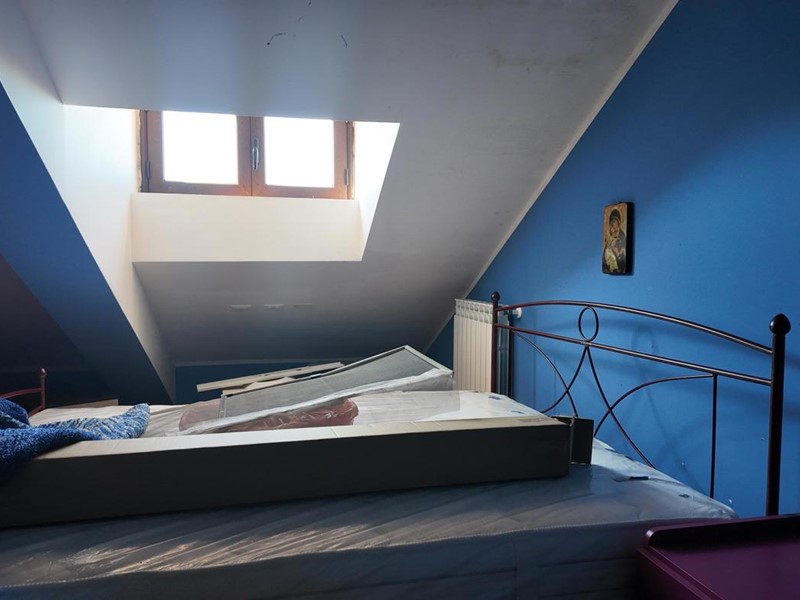 -Piano primo mq 64, composto da 3 camere da letto e 1 wcd. Da scala si accede al sottotetto di mq 64 composto da un unico grande ambiente mansardato con tetti spioventi.