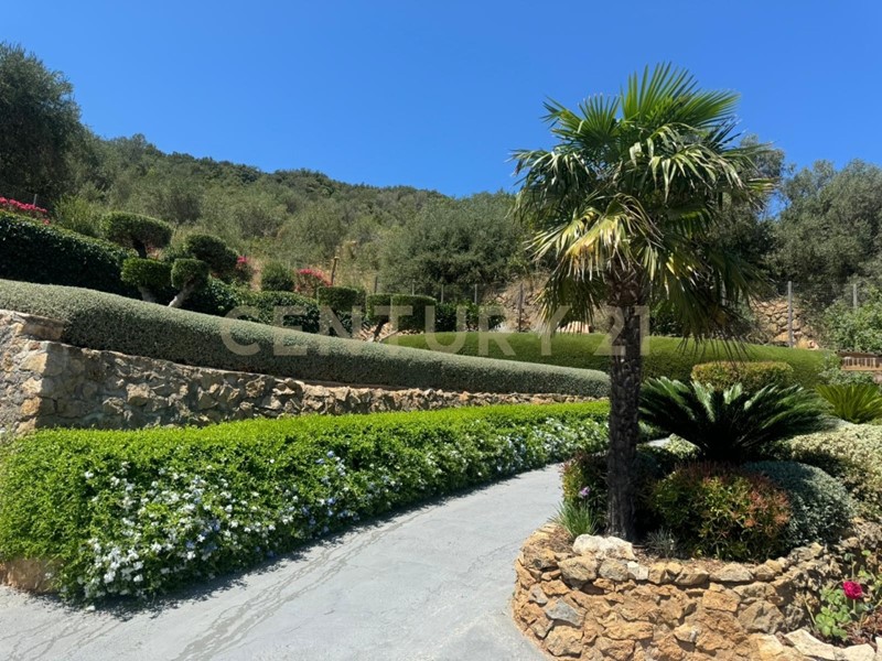 La casa è circondata da un giardino curatissimo, dotato di illuminazione e irrigazione automatica con pozzo dell' acqua privato, ed offre una varietà di spazi dedicati al relax e al divertimento: una piscina fuori terra, una zona prendisole, un laghetto con ninfee e carpe koi, un orto, un agrumeto, piante da frutto e un'area dedicata al giardino ornamentale.