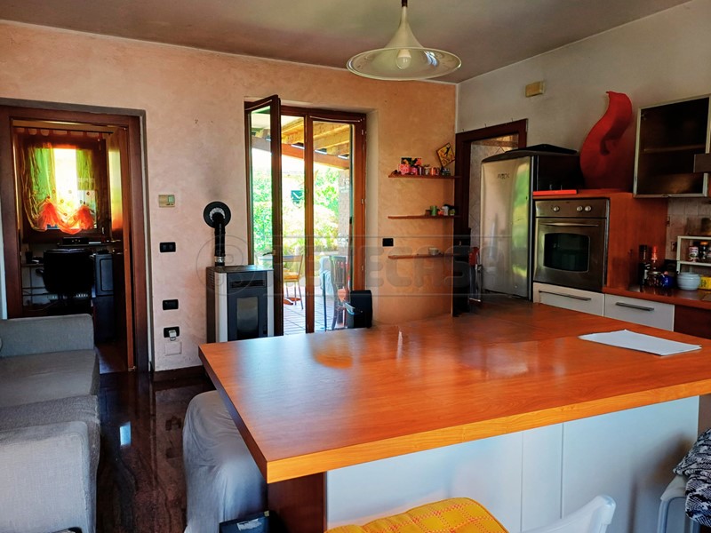 L' appartamento di buone dimensioni è al piano terra di un condominio di sole 4 unità. Ha ingresso indipendente da cui si accede direttamente alla zona giorno, caratterizzata da un'angolo cottura con bancone centrale, lo spazio per due piccoli divani, il mobile tv e una stufa a legna e pellet. La zona giorno comunica direttamente con una camera matrimoniale di buone dimensioni in cui ci sta comodamente un guardaroba ed una scrivania o una cassettiera. Sempre dalla zona giorno si accede ad un antibagno finestrato con funzioni di ripostiglio e lavanderia. Da esso si procede ad un bagno di dimensioni generose, luminoso e finestrato.