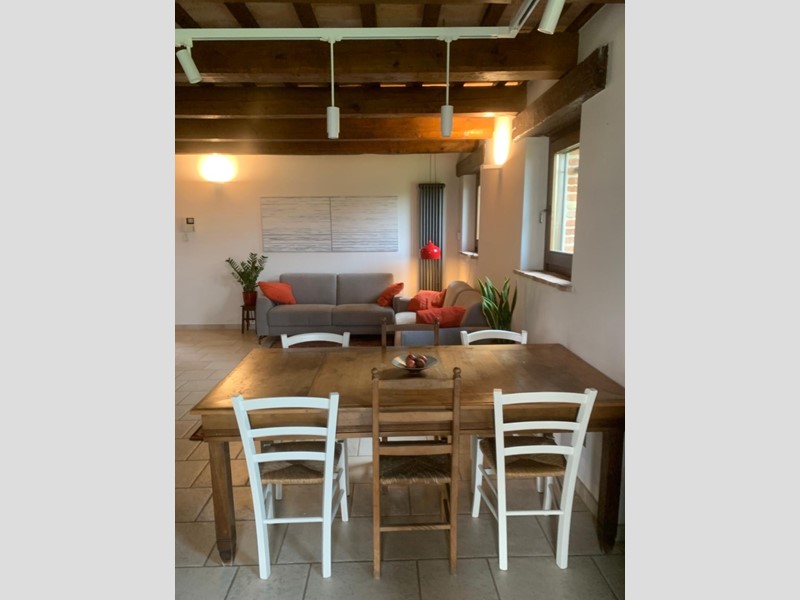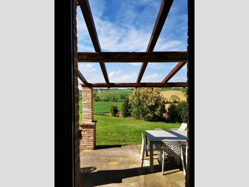 Il casale e' immerso in una corte di mq 4800 circa ed e' stato sapientemente ristrutturato con attenzione al recupero dei materiali, travi antiche, mattoni, pianelle e porte interne con il tipico saltarello marchigiano. La metratura della casa principale e' di circa 257 mq