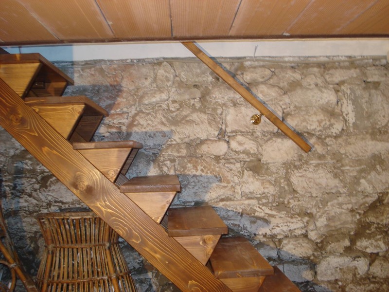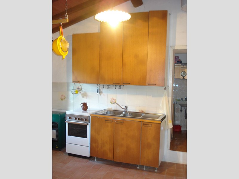 E' composta da soggiorno con focolare e accesso al resede tergale terrazzato con vista panoramica sulle colline antistanti, cucina abitabile, bagno, grande disimpegno/lavanderia dove si trova anche la scala per accedere al piano superiore. Qui troviamo altro grande disimpegno da dove è possibile accedere al resede terrazzato tergale e due grandi camere da letto.