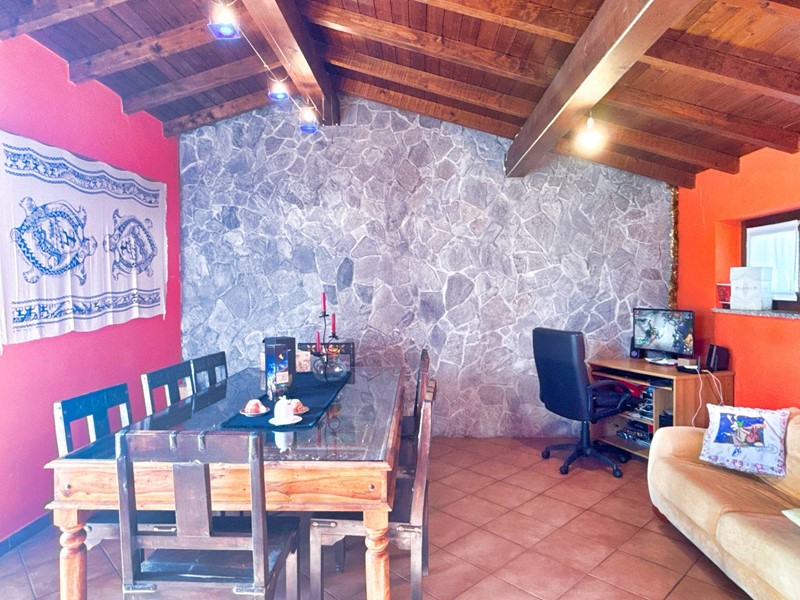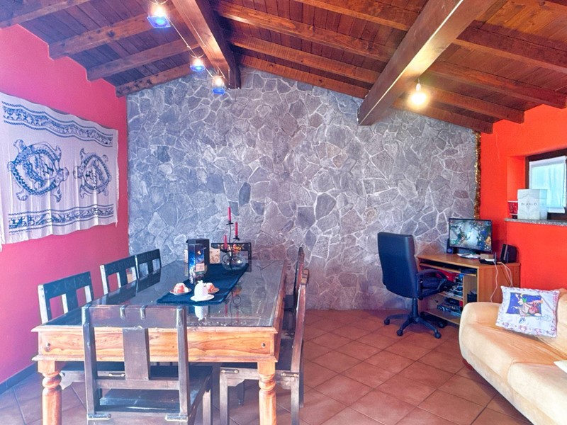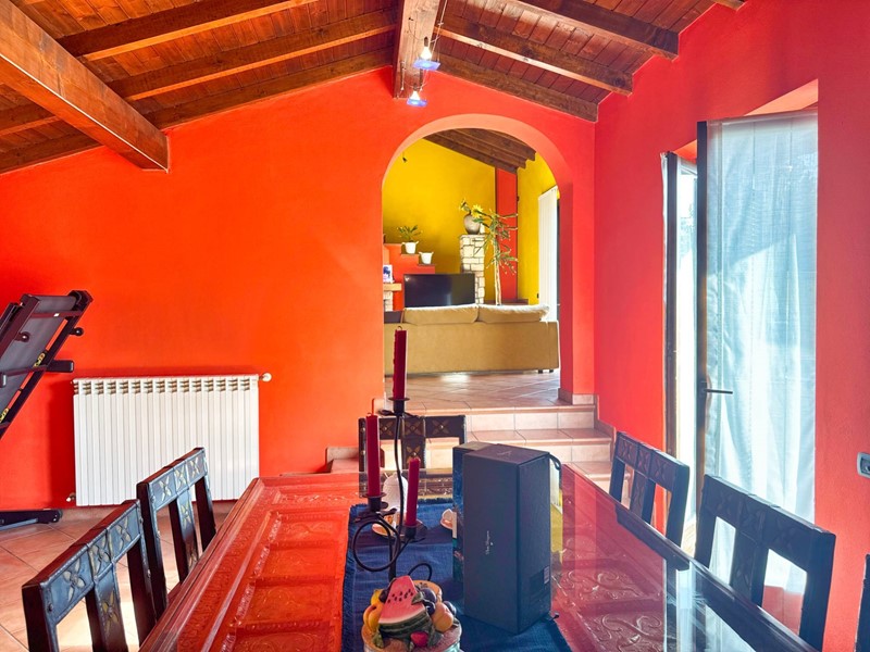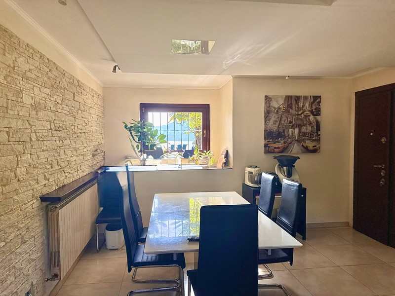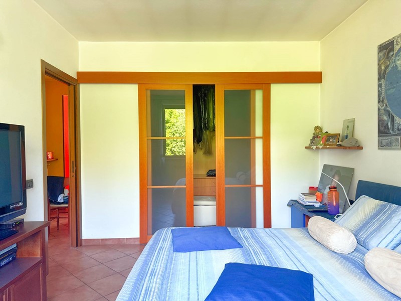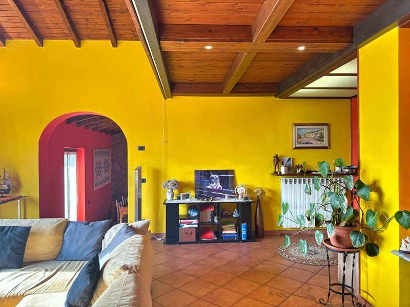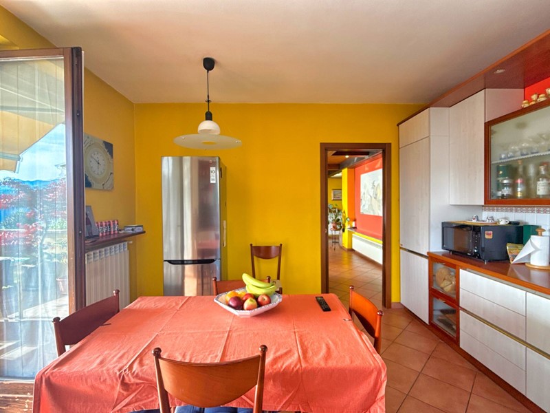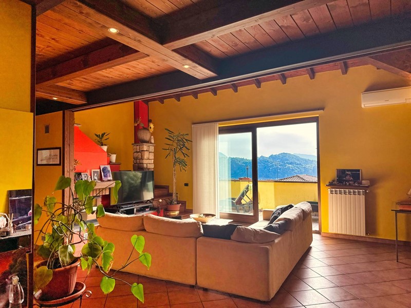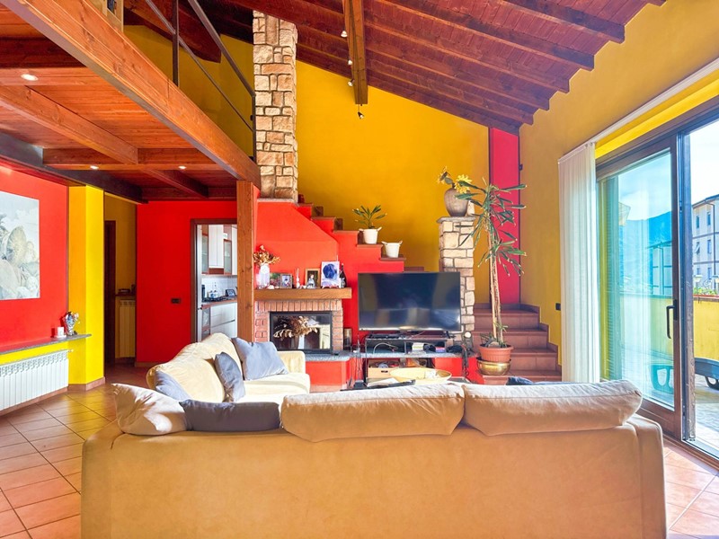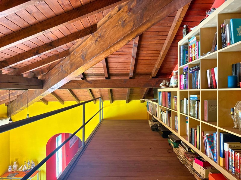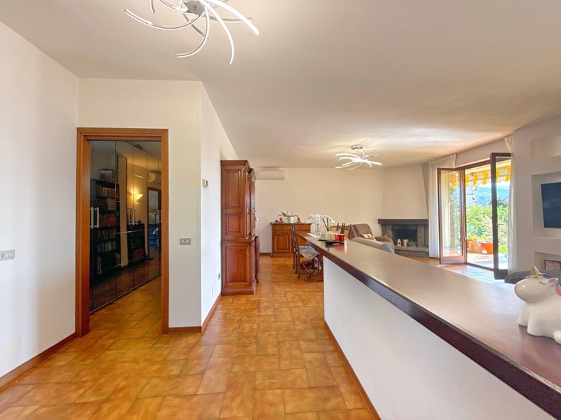 Il piano superiore, accessibile tramite una scala esterna indipendente, accoglie un secondo appartamento che si distingue per la sua zona living calda e accogliente, impreziosita da un elegante camino, un soppalco e travi a vista, il tutto arricchito da una vista panoramica mozzafiato sul Lago Maggiore. La zona giorno include un ampio soggiorno, una cucina abitabile e una zona pranzo, con affacci diretti su balconi di circa 35 mq. La zona notte è composta da due spaziose camere da letto, una cabina armadio e due bagni.