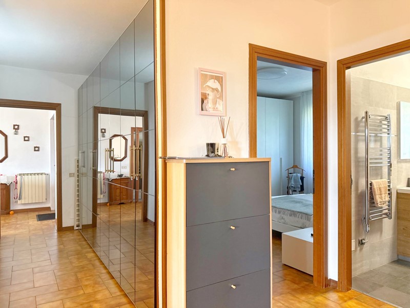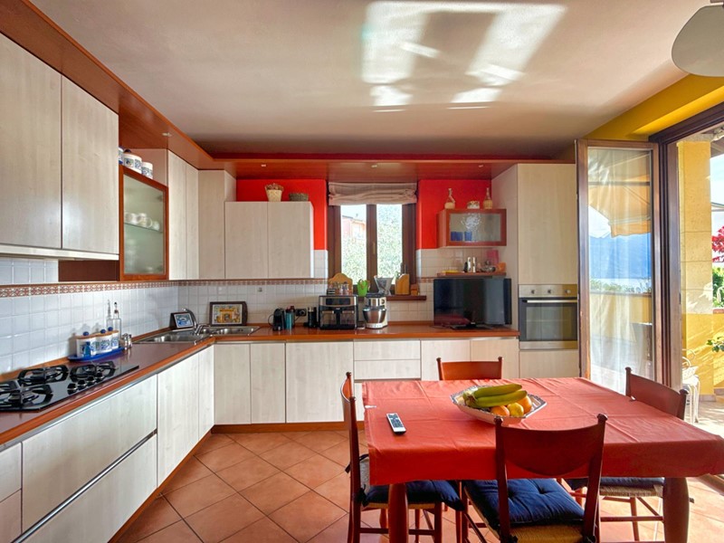 Il piano terra ospita una comoda e moderna zona living che comprende un soggiorno e una cucina abitabile, con accesso diretto a un portico coperto di circa 40 mq e al giardino circostante, il tutto con vista lago spettacolare. Un ampio disimpegno separa le tre camere da letto e i due bagni, offrendo la giusta privacy e funzionalità.