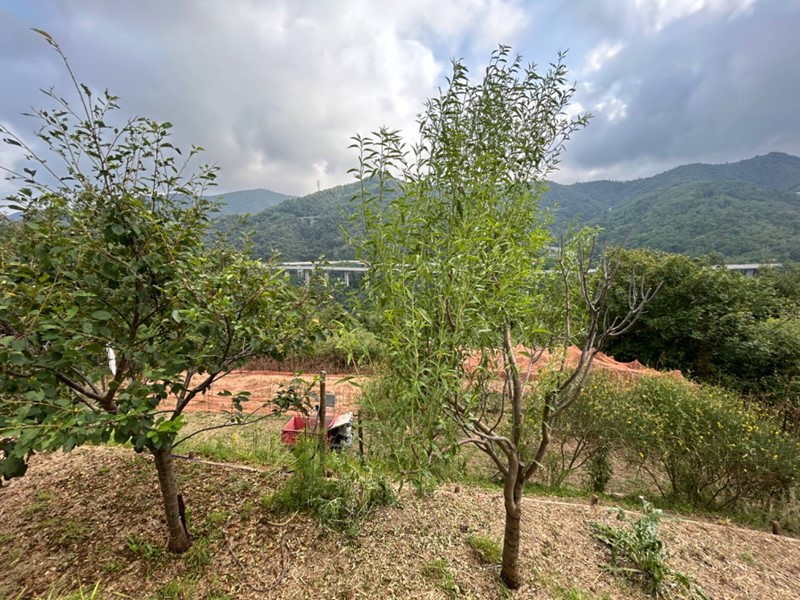 Ampia varietà di alberi da frutto: noccioli, mandorlo, amarena, susino, melo, limoni (5), mandarini clementina (2), aranci Tarocco (2), kaki, melograno, albicocchi (3), ciliegio Durone, fichi (3/4), nespole (2), gelso, piante di Goji (1/2).