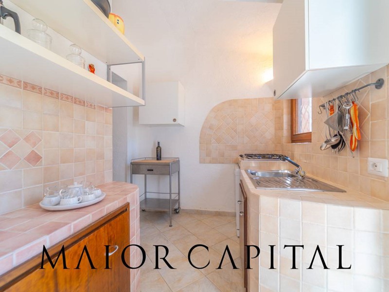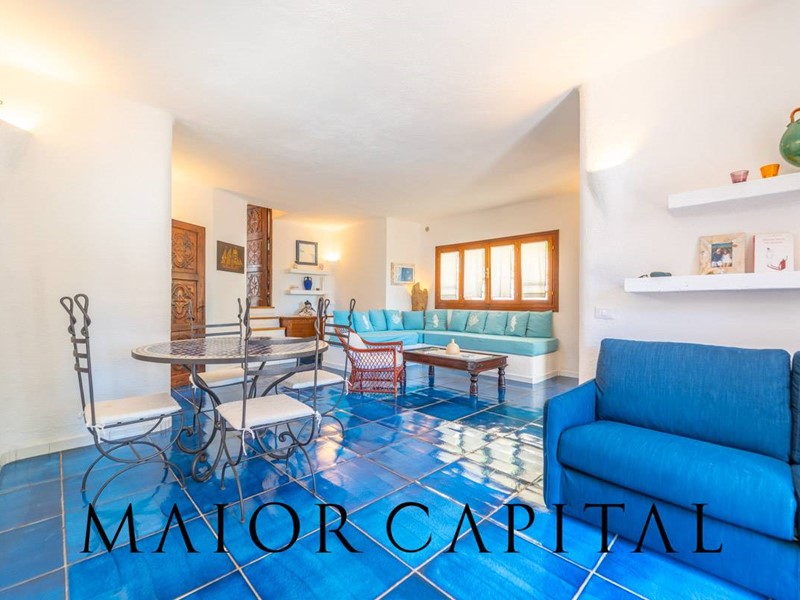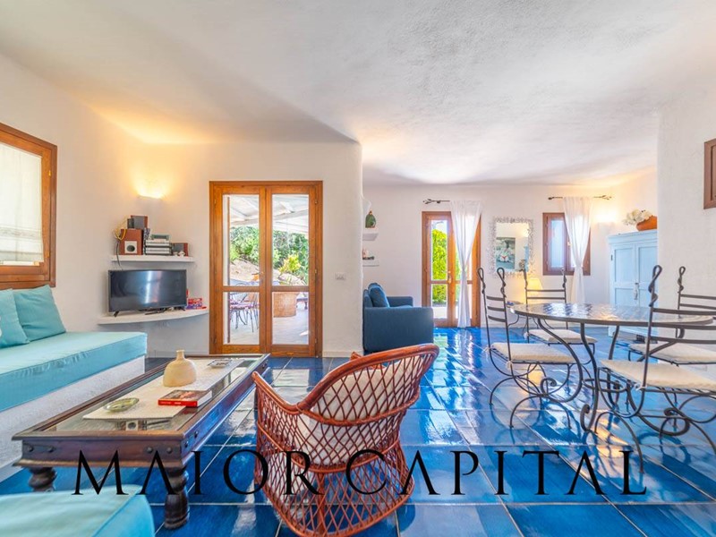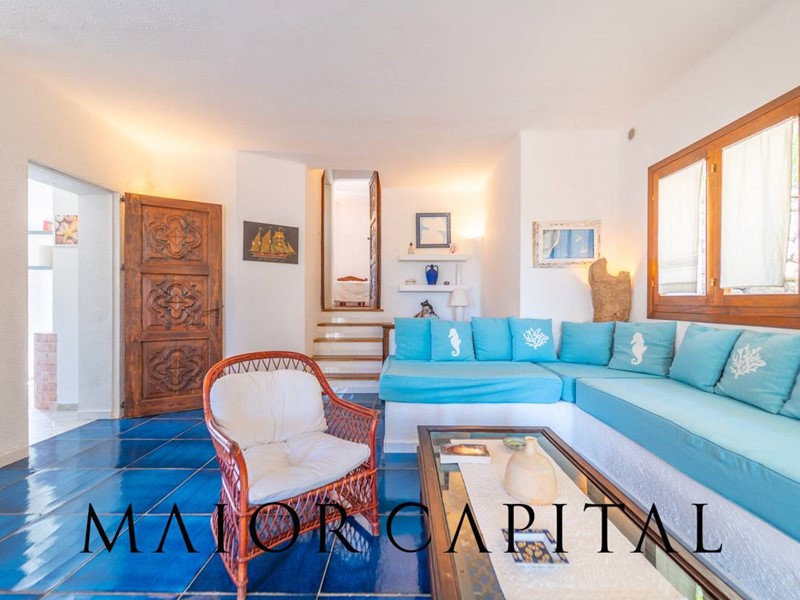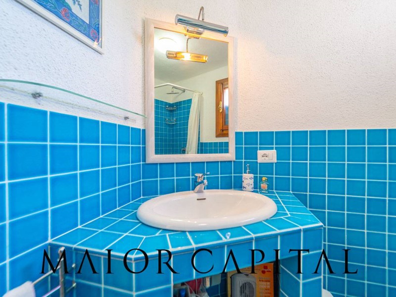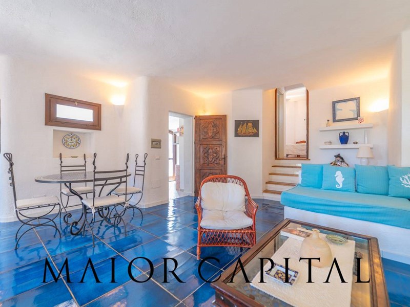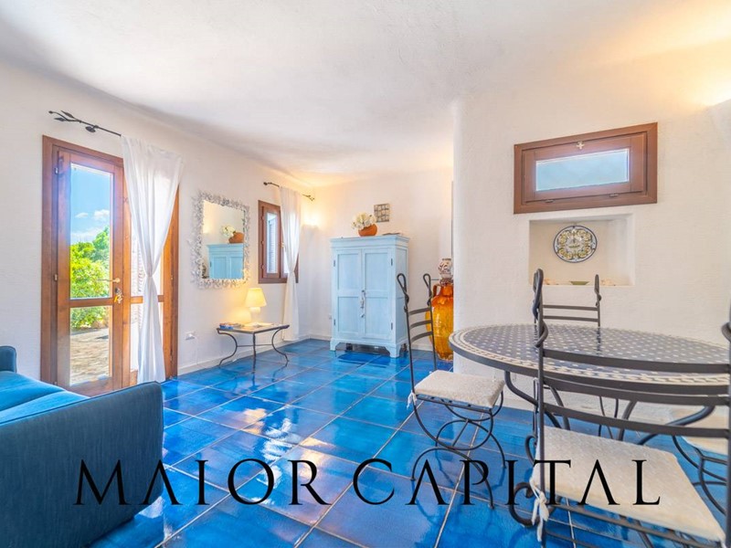 Il corpo principale si apre su unaccogliente zona living, i cui i toni chiari delle pareti e degli arredi si fondono armoniosamente con il pavimento in cera sarda smaltata di blu, che richiama le sfumature del mare e dona unimmediata sensazione di freschezza e luminosità. La cucina, separata dal soggiorno, rappresenta un ambiente pratico e ben organizzato, rivestita con eleganti piastrelle dalle tonalità naturali, è caratterizzata da un piano di lavoro in muratura, che dona carattere e continuità estetica allo spazio. A completare questo corpo, la camera da letto padronale, che riflette lautenticità dello stile sardo attraverso arredi artigianali e dettagli tradizionali, e un bagno piastrellato nei toni dellazzurro, dotato di box doccia.