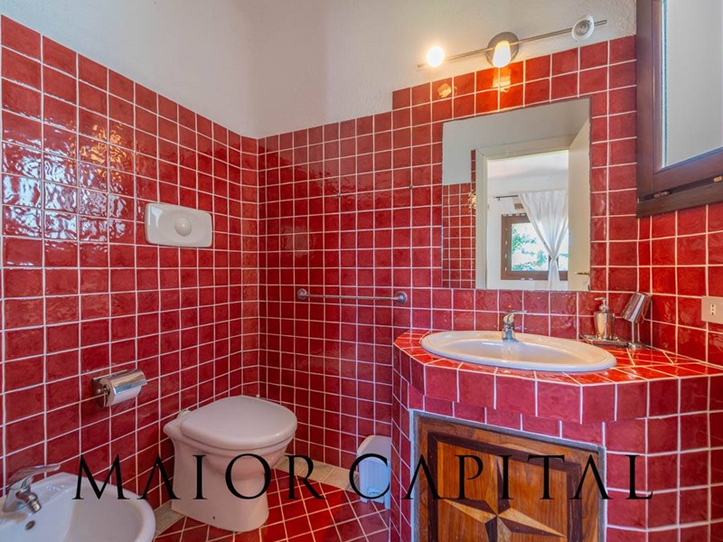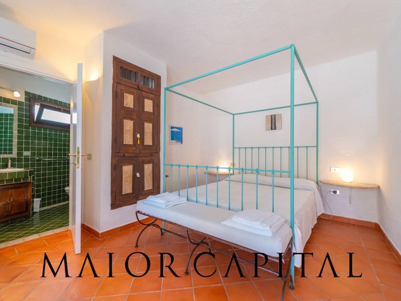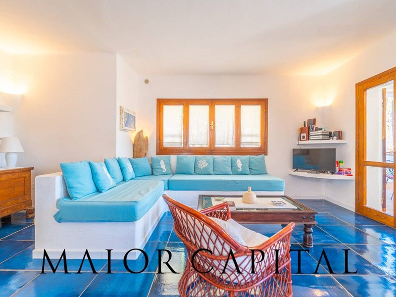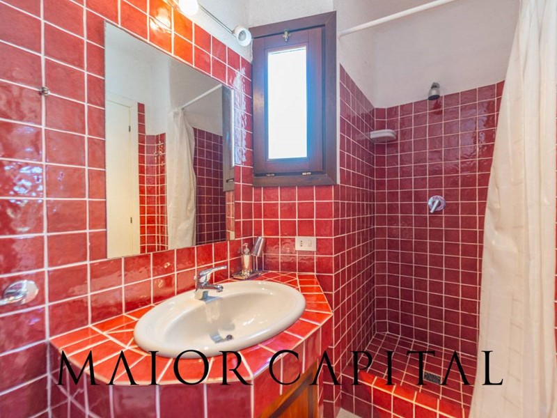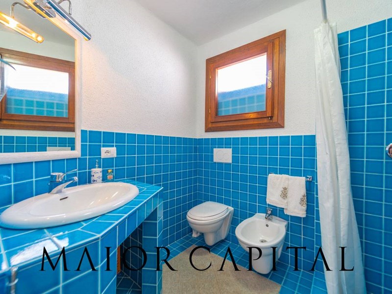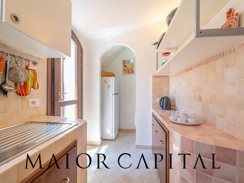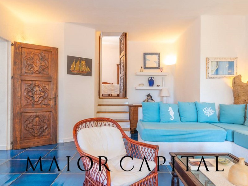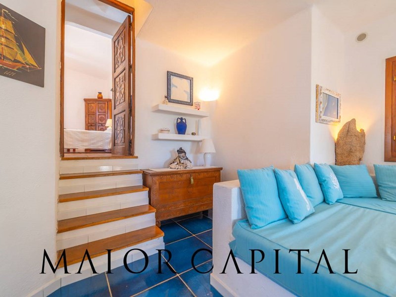 Il corpo principale si apre su unaccogliente zona living, i cui i toni chiari delle pareti e degli arredi si fondono armoniosamente con il pavimento in cera sarda smaltata di blu, che richiama le sfumature del mare e dona unimmediata sensazione di freschezza e luminosità. La cucina, separata dal soggiorno, rappresenta un ambiente pratico e ben organizzato, rivestita con eleganti piastrelle dalle tonalità naturali, è caratterizzata da un piano di lavoro in muratura, che dona carattere e continuità estetica allo spazio. A completare questo corpo, la camera da letto padronale, che riflette lautenticità dello stile sardo attraverso arredi artigianali e dettagli tradizionali, e un bagno piastrellato nei toni dellazzurro, dotato di box doccia.