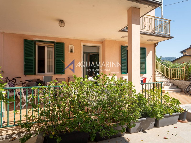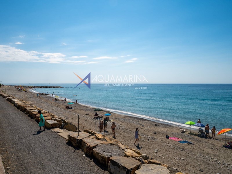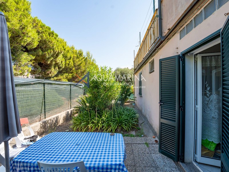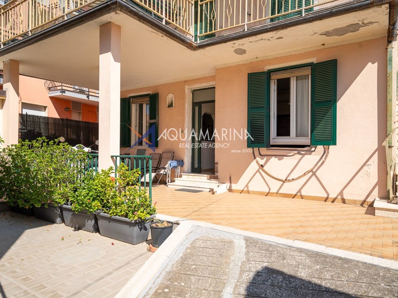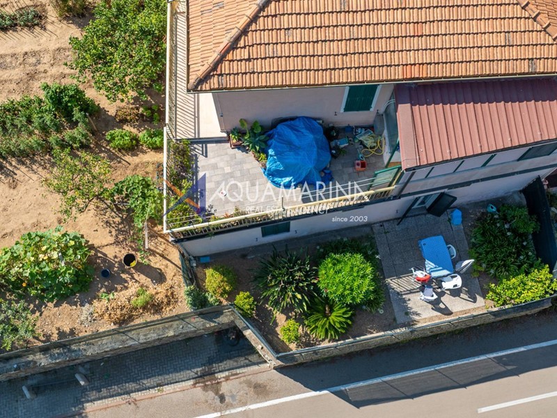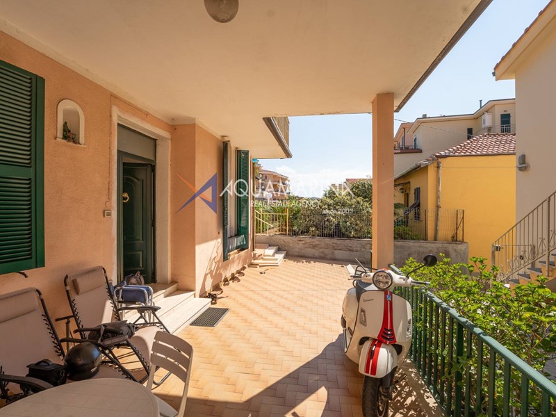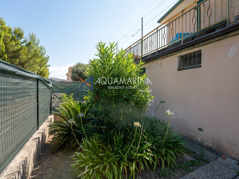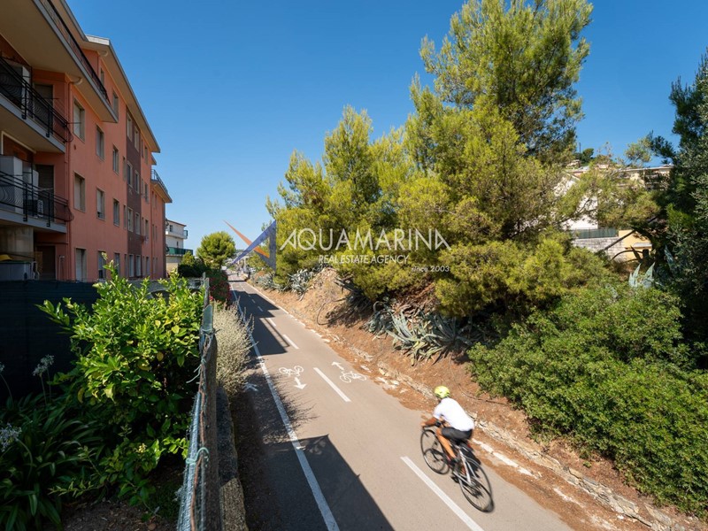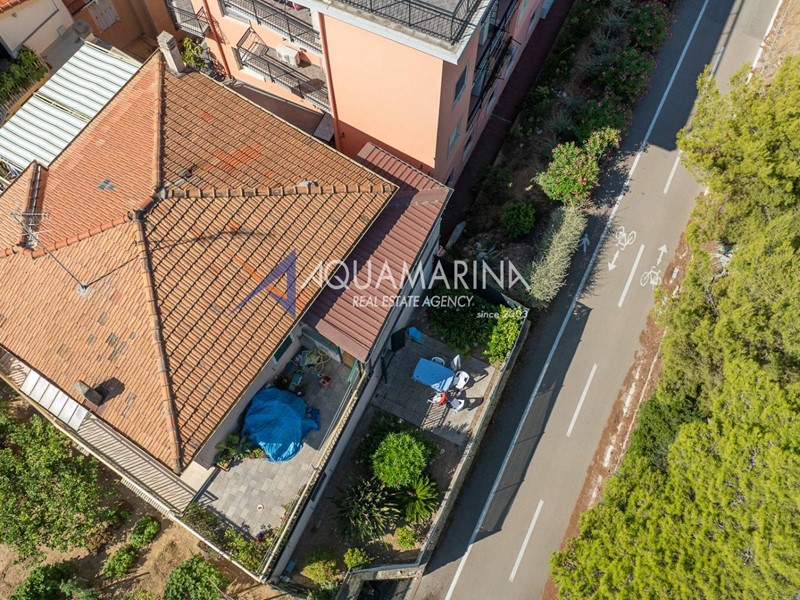 La proprietà è inoltre suddivisa in 2 appartamenti entrambi con accesso indipendente al piano terra: il primo appartamento è un trilocale con porticato e vista mare; il secondo appartamento è un bilocale con giardino e vista sulla pista ciclabile Cycling Riviera.