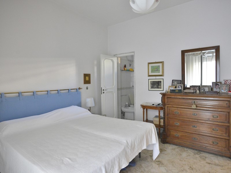 L'ingresso ci introduce direttamente nel salone doppio, con due balconi con vista mare; la cucina abitabile, affacciata sull'interno arioso e ordinato, è comoda e luminosa, è completa dell'arredo in muratura, ed ha annessa una pratica dispensa/lavanderia con finestra. La zona notte ha tre camere da letto: una camera padronale molto ampia con bagno riservato, ed altre due comode camere. Completano le comodità della casa il secondo bagno ed un pratico ripostiglio.