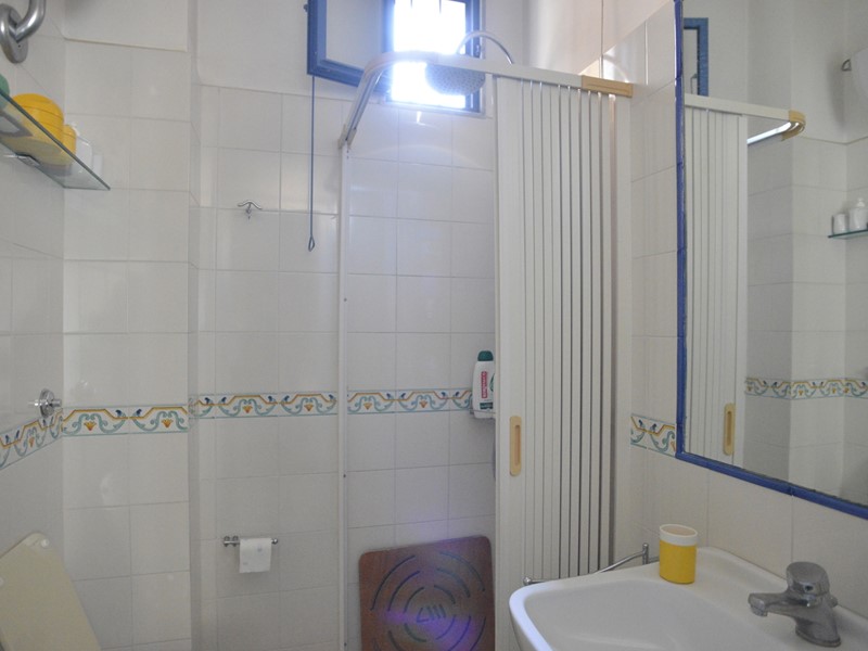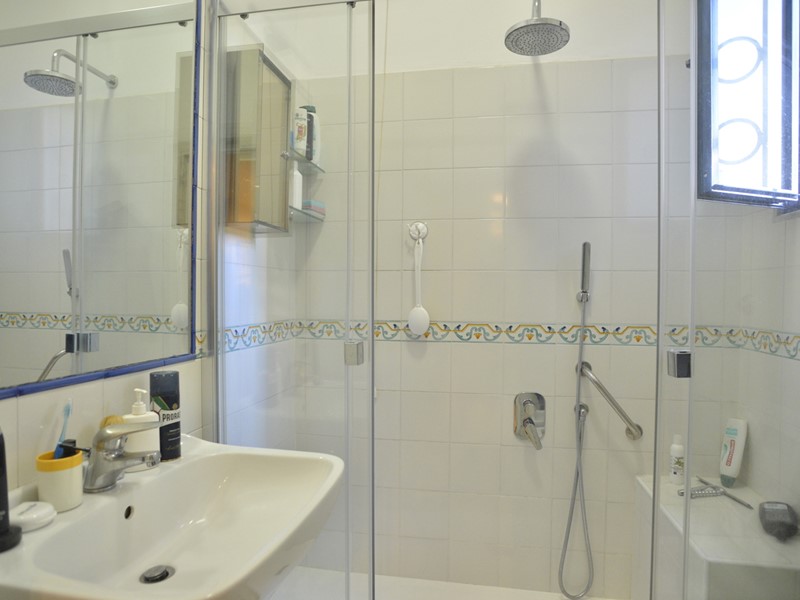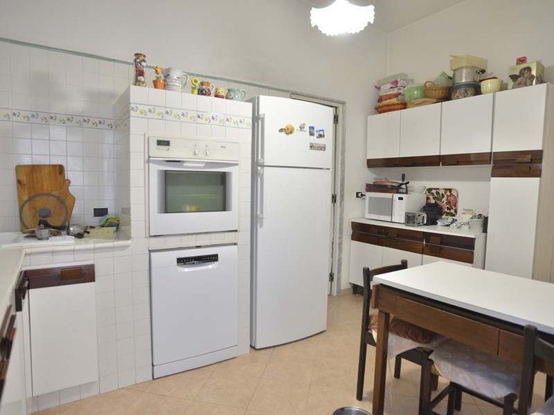 L'ingresso ci introduce nella zona giorno: il salone doppio ha due balconi con vista mare; la cucina abitabile, affacciata sull'interno arioso e ordinato, è comoda e luminosa, ed è completa dell'arredo in muratura; ha annessa una pratica dispensa/lavanderia con finestra. La zona notte, ben disimpegnata, ha tre camere da letto: una camera padronale molto ampia con bagno riservato; altre due comode camere. Completano le comodità della casa il secondo bagno ed un pratico ripostiglio.