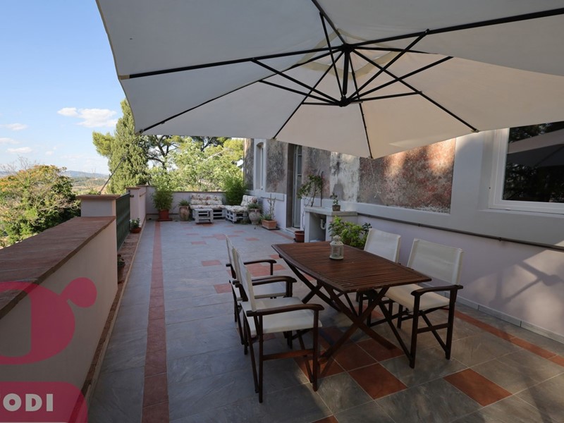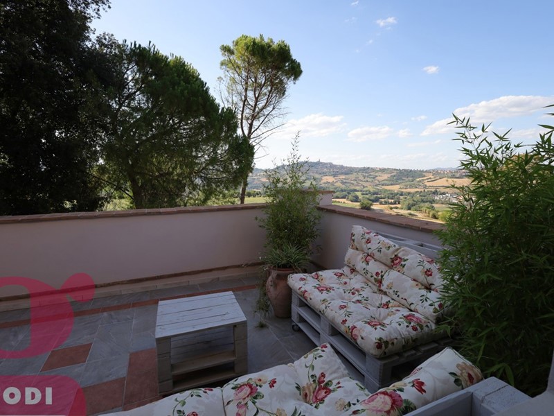 L'abitazione è composta da un ampio soggiorno - sala da pranzo con camino, una cucina abitabile, due camere da letto di cui una con bagno en suite, un secondo bagno ed un terrazzo panoramico di 42 mq, da cui ammirare una vista mozzafiato su Todi e sul paesaggio collinare umbro.
