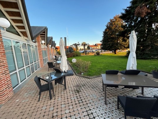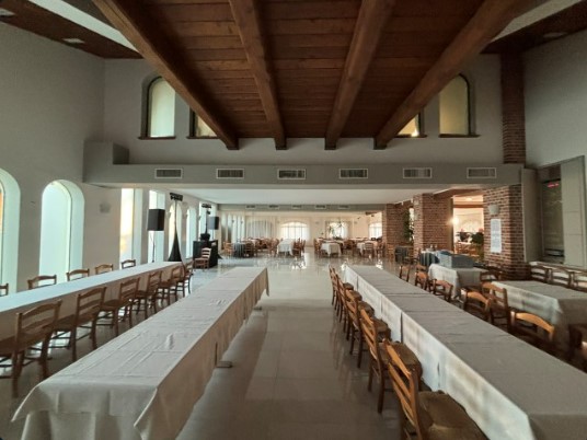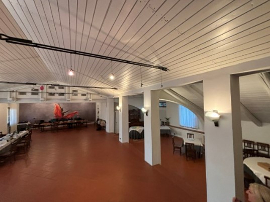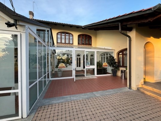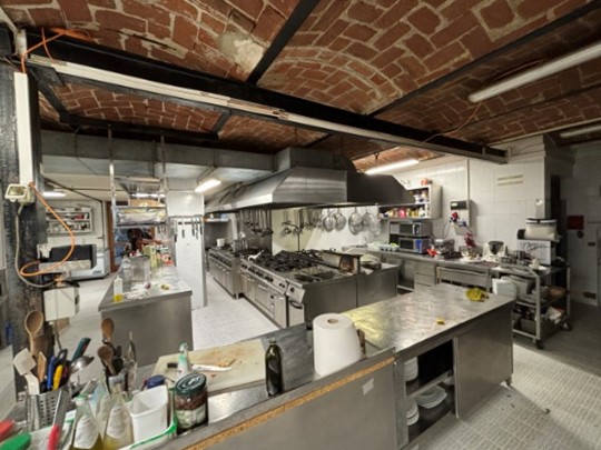 RISTORANTE: edificio ad uso commerciale, per attività di ristorazione, si eleva su due piani fuori terra ed uno entro terra. Sulla parte frontale è presente un dehor realizzato in muratura e struttura in ferro e vetro. Esternamente al fabbricato due aree verdi ed ampio spazio destinato a parcheggio. MQ 1.711