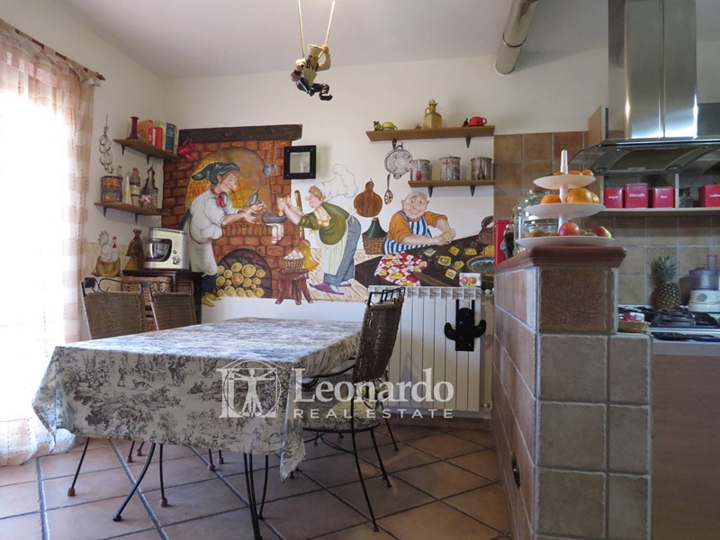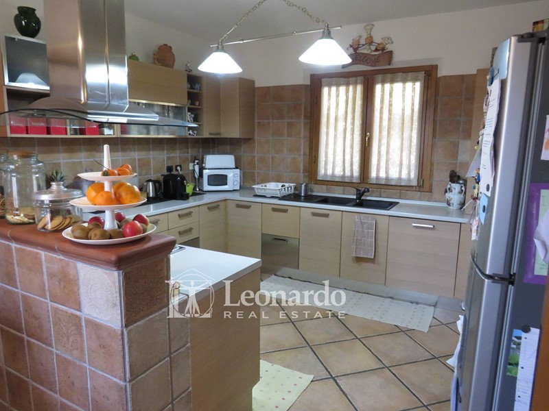 Dall'ingresso ci accoglie il soggiorno che si affaccia al grande porticato e dall'altro lato conduce alla grande cucina. Il pian terreno si completa con il bagno di servizio.