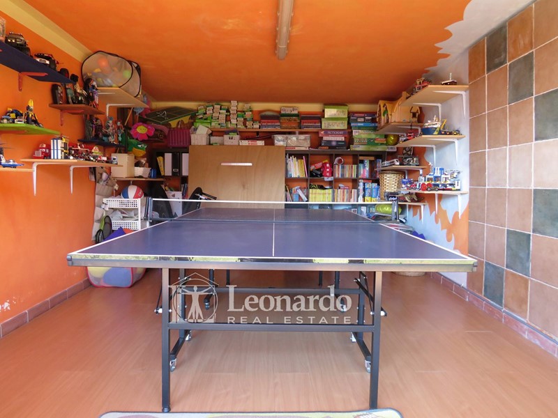 Dal giardino con accesso esterno, una stanza ora adibita a sala giochi completa gli spazi dell'abitazione, oltre ai due posti auto di proprietà.