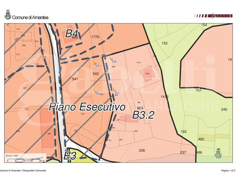Gabetti Amantea propone in zona collinare di Amantea, con vista mare e panoramica, terreno edificabile di 2.630 mq di superficie totale catastale, in parte in zona B3.2 ed in parte in zona B4.