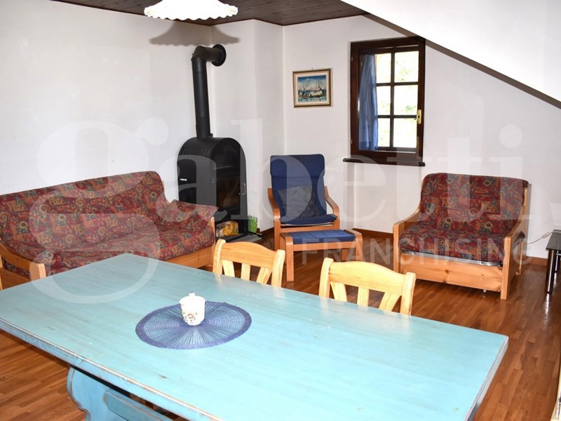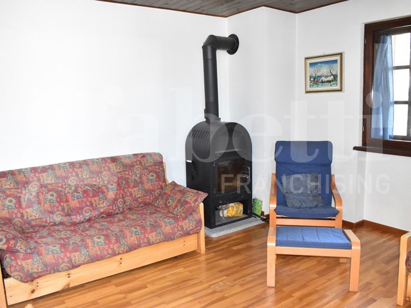 L'appartamento si presenta in buone condizioni interne e offre un'atmosfera calda e accogliente grazie alla presenza di una stufa nel soggiorno. L'angolo cottura a vista, è funzionale e ben organizzato.