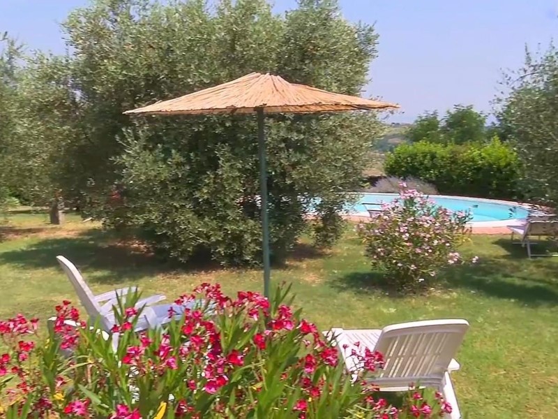 Nel giardino si trova anche la piscina in un caratteristico angolo verde, sedie a sdraio, lettini, 2 ombrelloni e doccia esterna.