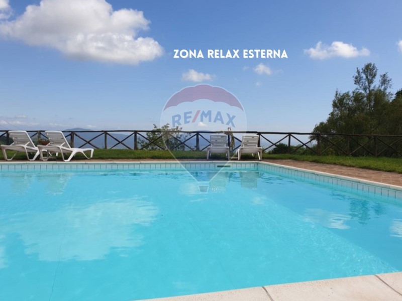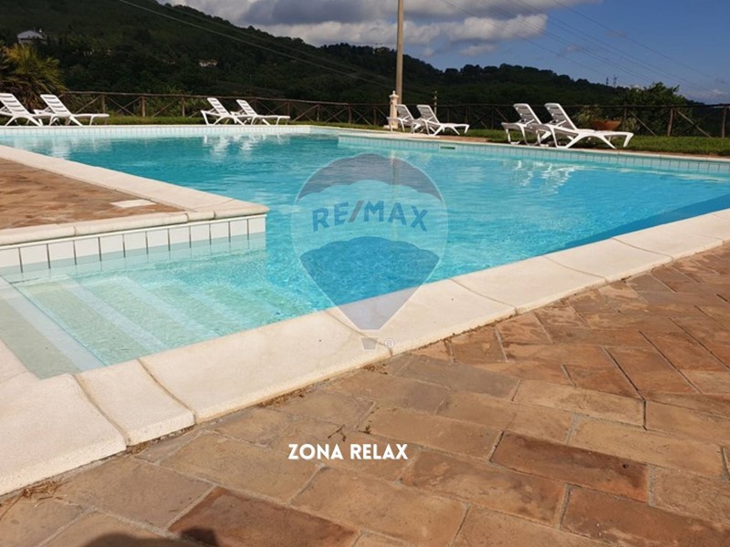 La struttura offre reception, portico attrezzato, piscina panoramica, parcheggio privato e terreno di 11.000 m² con possibilità di edificare ulteriori 250 m² per un centro benessere o spazi eventi.