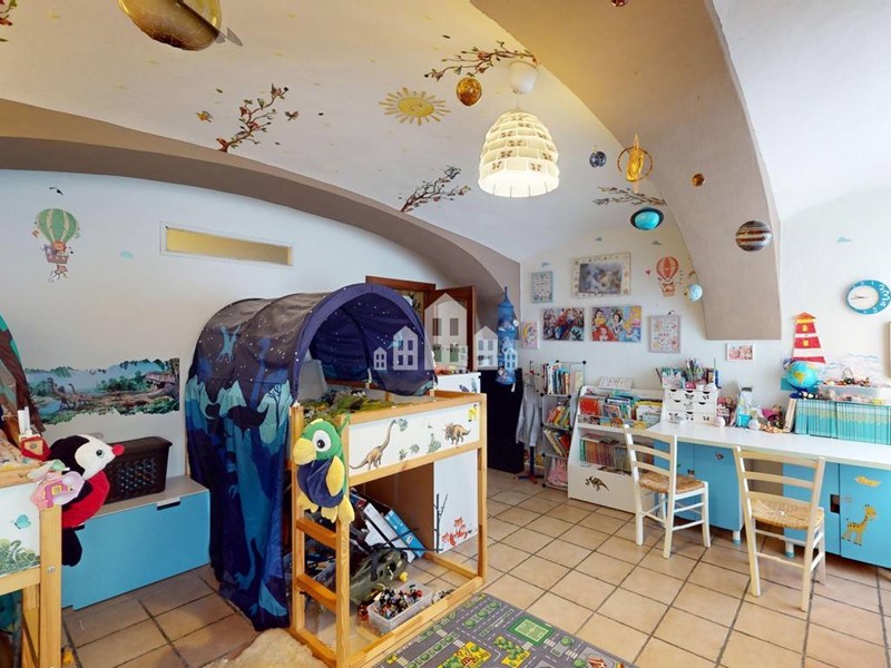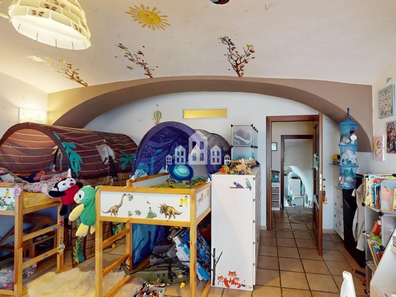 L'abitazione principale si sviluppa su tre livelli, oltre a un piano interrato che ospita una taverna unica nel suo genere, con una splendida volta a vista in mattoni che conferisce un'atmosfera rustica e accogliente. Gli interni, caratterizzati da una disposizione movimentata e collegati da scale interne, garantiscono la massima privacy per ogni ambiente. Questo layout flessibile permette di ricavare spazi dedicati allo smart working, a una palestra privata o a qualsiasi altra esigenza, separando efficacemente le aree di lavoro e svago dalla zona abitativa.