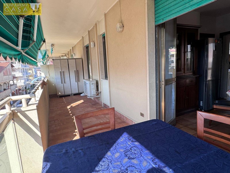 - soggiorno con accesso ad AMPIO TERRAZZO ABITABILE vista mare di Mq. 18 circa, esposto a sud e dotato di doppia tenda da sole,