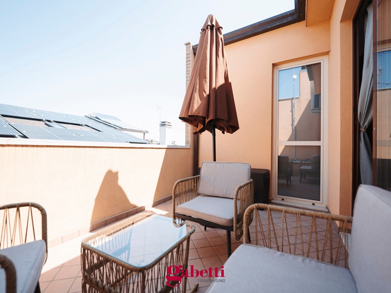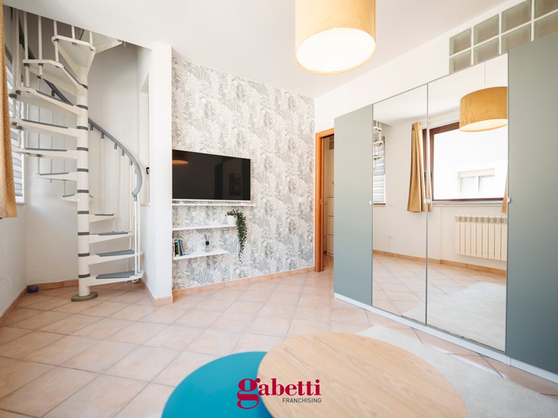 Ma non è finita qui: una scala a chiocciola ci accompagna al terzo piano, dove si apre una stanza matrimoniale con accesso diretto a un grazioso terrazzo, perfetto per godersi un po' di relax all'aperto.