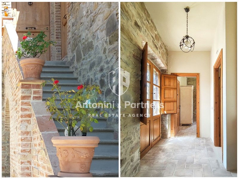 Il casale è un mix antico/moderno frutto di un sapiente restauro, capace di valorizzare l’anima storica della proprietà, senza rinunciare al comfort contemporaneo, dove materiali autentici e recuperati come pietra a vista e pavimenti in cotto si integrano con arredi dal design minimalista, linee pulite e pareti bianche. La corte esterna un terrazzo sulla natura.