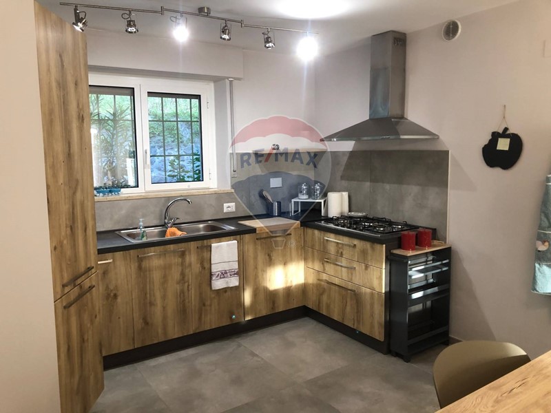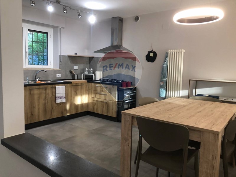 La cucina abitabile è completamente arredata e gode di un'ampia finestra che regala una piacevole vista sul verde circostante.