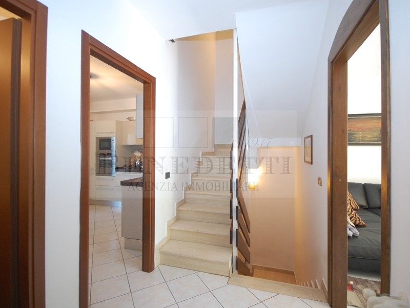 Pietrasanta, primissime adiacenze Centro Storico: Villetta a schiera in contesto residenziale comodo e tranquillo. Unità di circa 180 mq di sul con sviluppo su due livelli principali e seminterrato. A piano terra con accesso da giardinetto esclusivo, ampio soggiorno, disimpegno, cucina abitabile con affaccio su terrazzino e ulteriore giardinetto esclusivo, servizio con antibagno - A piano primo due camere matrimoniali con balconi, vano armadi/cameretta, disimpegno, servizio con vasca idromassaggio - a piano seminterrato luminosa taverna con camino, vano polivalente (camera ospiti) e servizio con ampia doccia. Unità con comoda possibilità di parcheggio oltre ad un posto auto esclusivo. Finiture ed impiantistica di livello superiore agli standard originali con AC, allarme, immobile in eccellente stato di manutenzione.