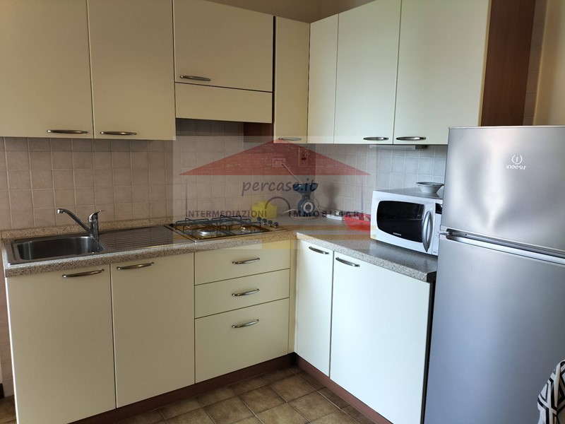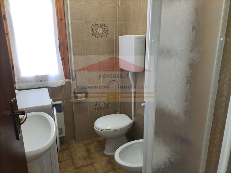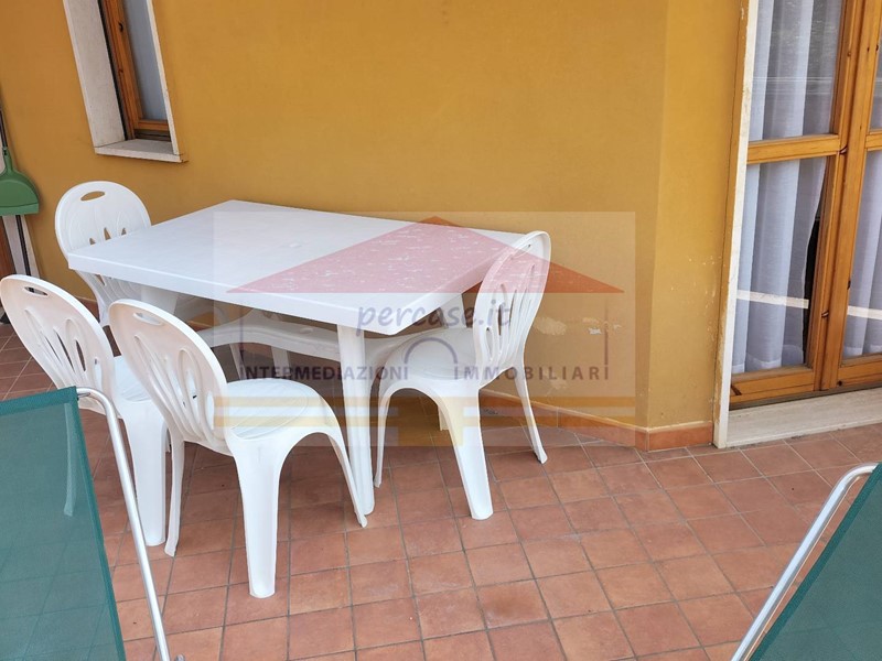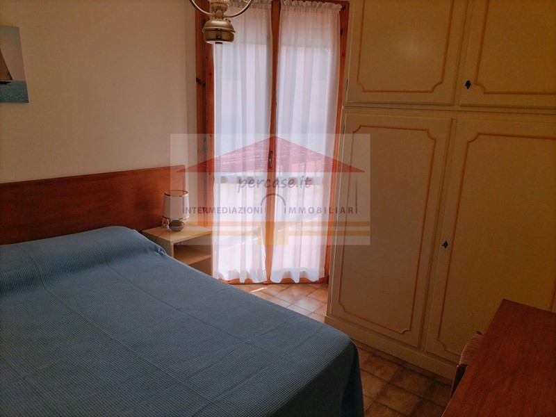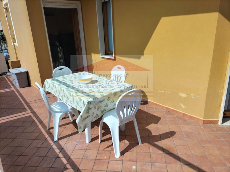 Appartamento centralissimo, al piano rialzato (con pochi gradini per l'accesso), in piccola palazzina con soli 6 appartamenti, con ingresso indipendente: soggiorno con angolo cottura, disimpegno, camera da letto, bagno con finestra, ampio terrazzo vivibile, esposizione sud/ovest, riscaldamento autonomo con caldaietta a gas, garage (2,40 x 6 mt). Comodissimo a tutti i servizi ed alle spiagge sabbiose di San Lorenzo. A poche centinaia di metri dalla pista ciclabile. L'alloggio gode di grande tranquillità essendo un'area preclusa al traffico.