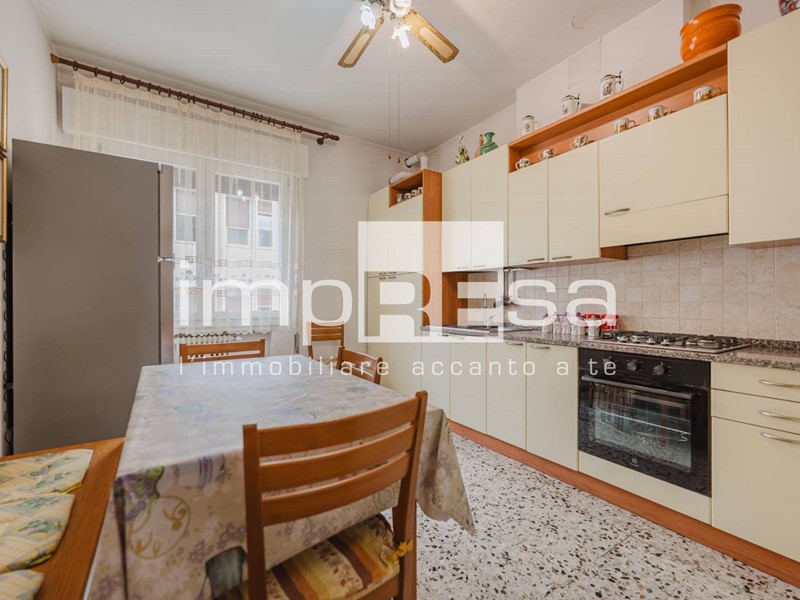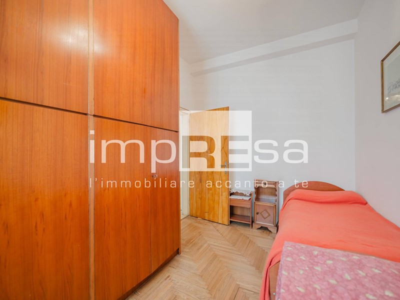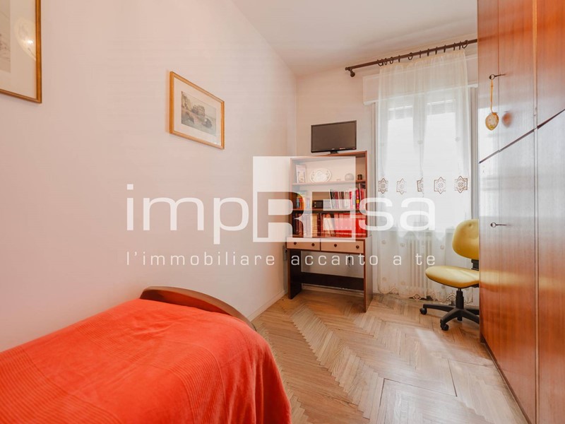 L'appartamento è al piano terzo, servito da ascensore, di mq. 105 circa commerciali, composto da ingresso con lungo corridoio, ampio salotto con affaccio su terrazzino, cucina separata e abitabile, camera matrimoniale, camera singola e studio, utilizzabile come terza camera e bagno con vasca.