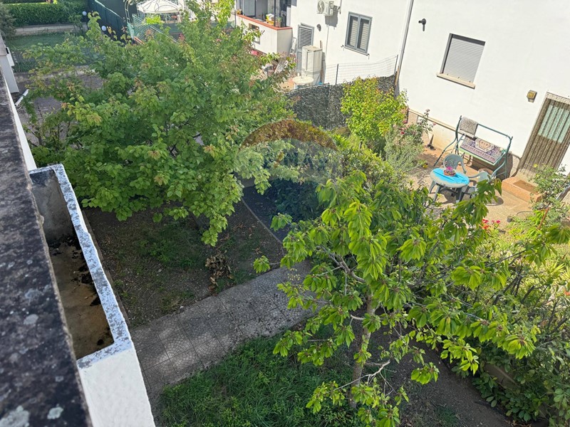 Al piano terra, disimpegno, grande cucina abitabile con accesso su balcone terrazzato, salone con doppio affaccio, bagno. Acceso al grande giardino di circa 60 Mq con alberi di ciliegio e albicocche.