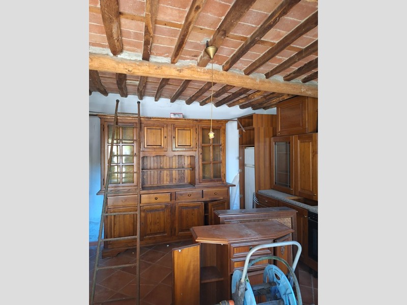 al primo piano disimpegno, due camere matrimoniali e bagno con doccia, oltre a soffitta ad uso ripostiglio con scala retrattile. A corredo terratetto di 40 mq su due paino composto da un vano al piano terra ed un vano al primo piano, una capanna centrale di 90 mq su due piani, resede per due posti auto e terreno di 80/100 mq poco discosto.
