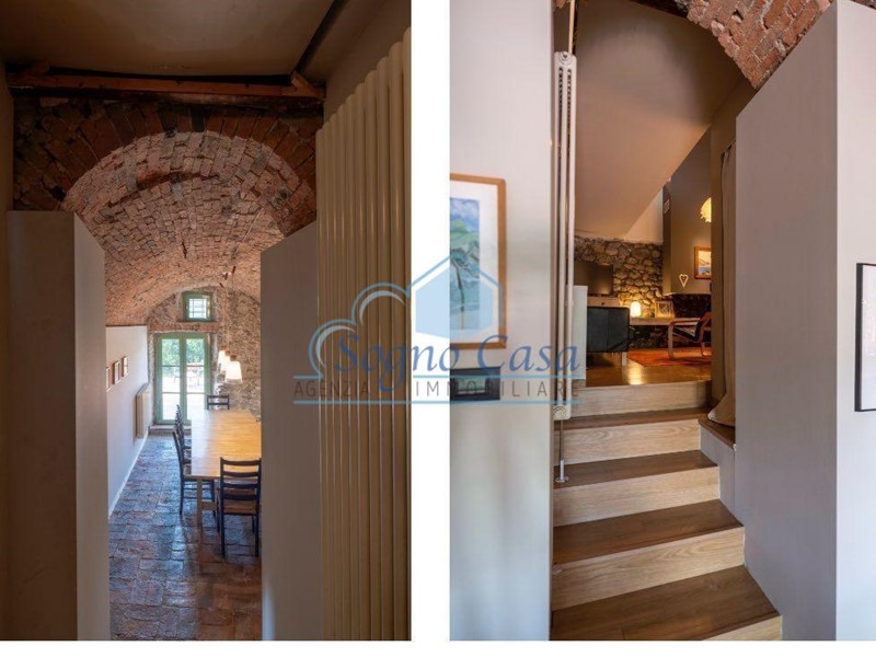 La casa semi indipendente e' composta da due ingressi, sala con pietra a vista , salone Voltato con Mattoncini rossi d'epoca, grande cucina con pavimento originale, due bagni, quattro camere, zona studio, cantina.