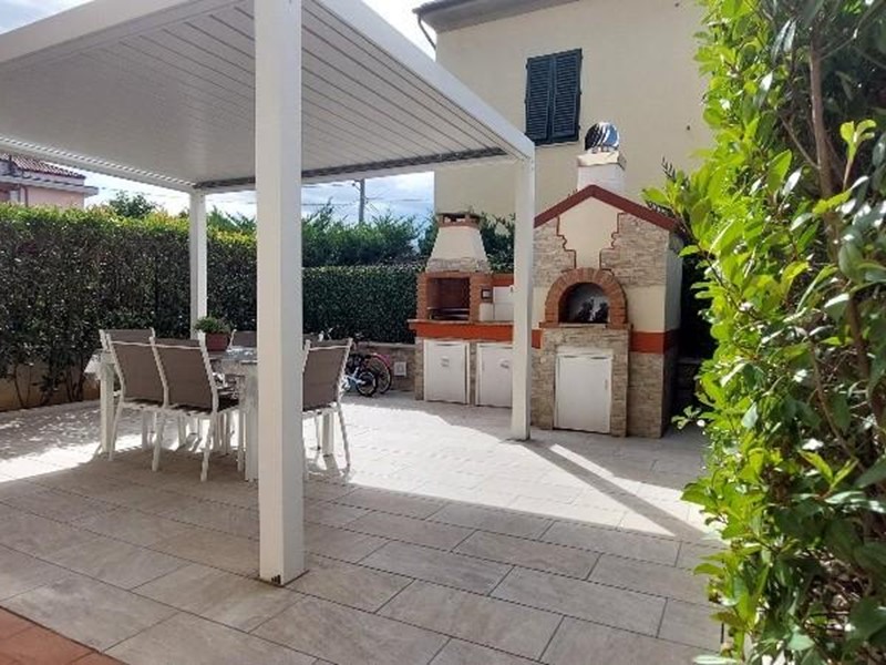 Casalguidi - In contesto tranquillo e signorile, elegante villetta unifamiliare di recente costruzione, libera 2 lati, con giardino e posti auto frontali e ampio resede tergale pavimentato con Gazebo e barbecue.