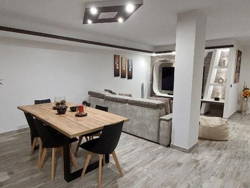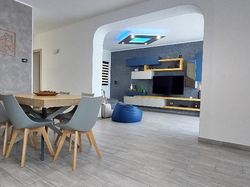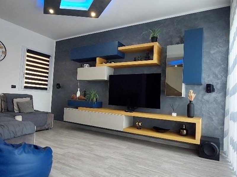 Riscaldamento a pavimento, termostato in ogni stanza, pannelli solari termici, pannelli fotovoltaici 1 kw (non allacciati), predisposizione aria condizionata, impianto allarme, infissi taglio termico in legno e in alluminio esterno, persiane in alluminio, porta blindata, vendita compresa di mobilio, e accessori.