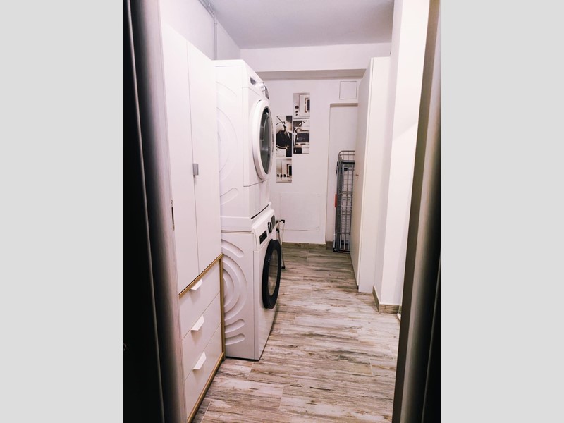 Il piano interrato è stato arredato in un'elegante taverna con angolo fitness e angolo lavanderia.