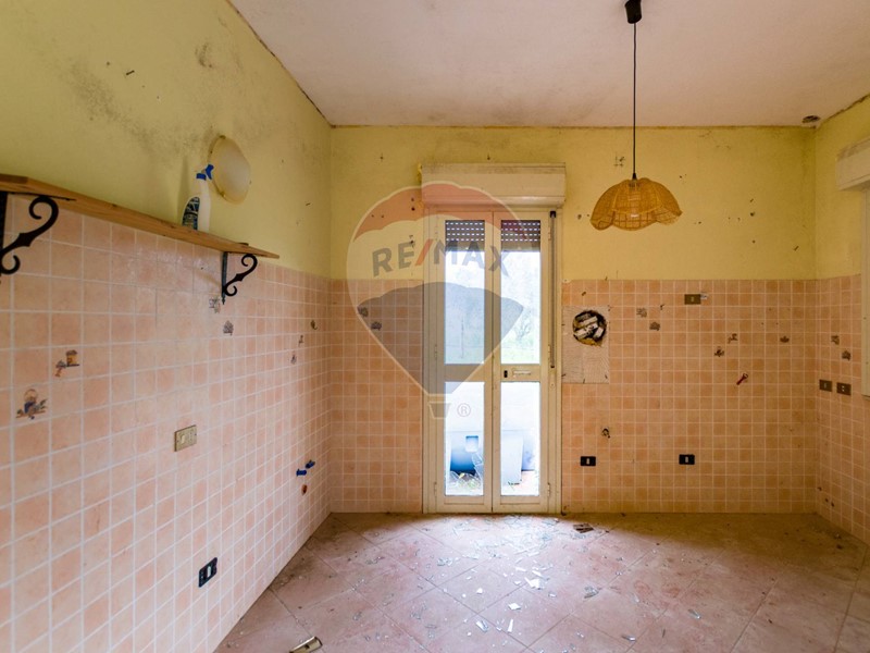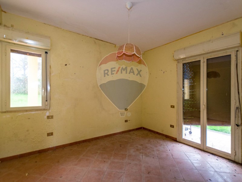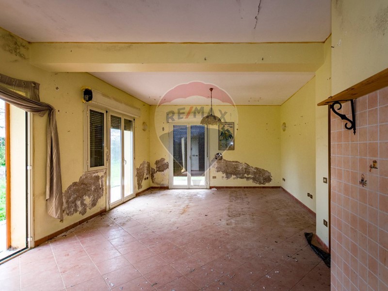 Il suo stato di conservazione richiede interventi di ristrutturazione ma offre ampi spazi e la possibilità di creare un ambiente personalizzato e confortevole. La villa è immersa nel verde di un terreno recintato che garantisce privacy e tranquillità con la presenza di alcuni alberi di agrumi.